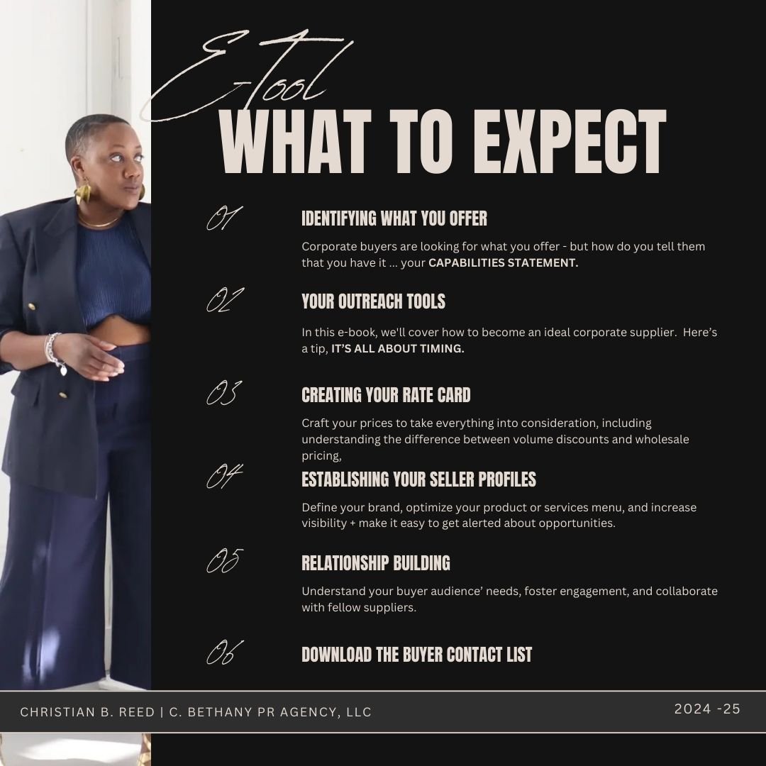 "I know you charging me for this, but have you thought about selling this as a workbook? There are so many entrepreneurs that would love to jump the line and just get started working. Or maybe they're like me and they're already familiar with the RFP processes but because they are new, they don't know the many offices and orgs that are seeking my services."