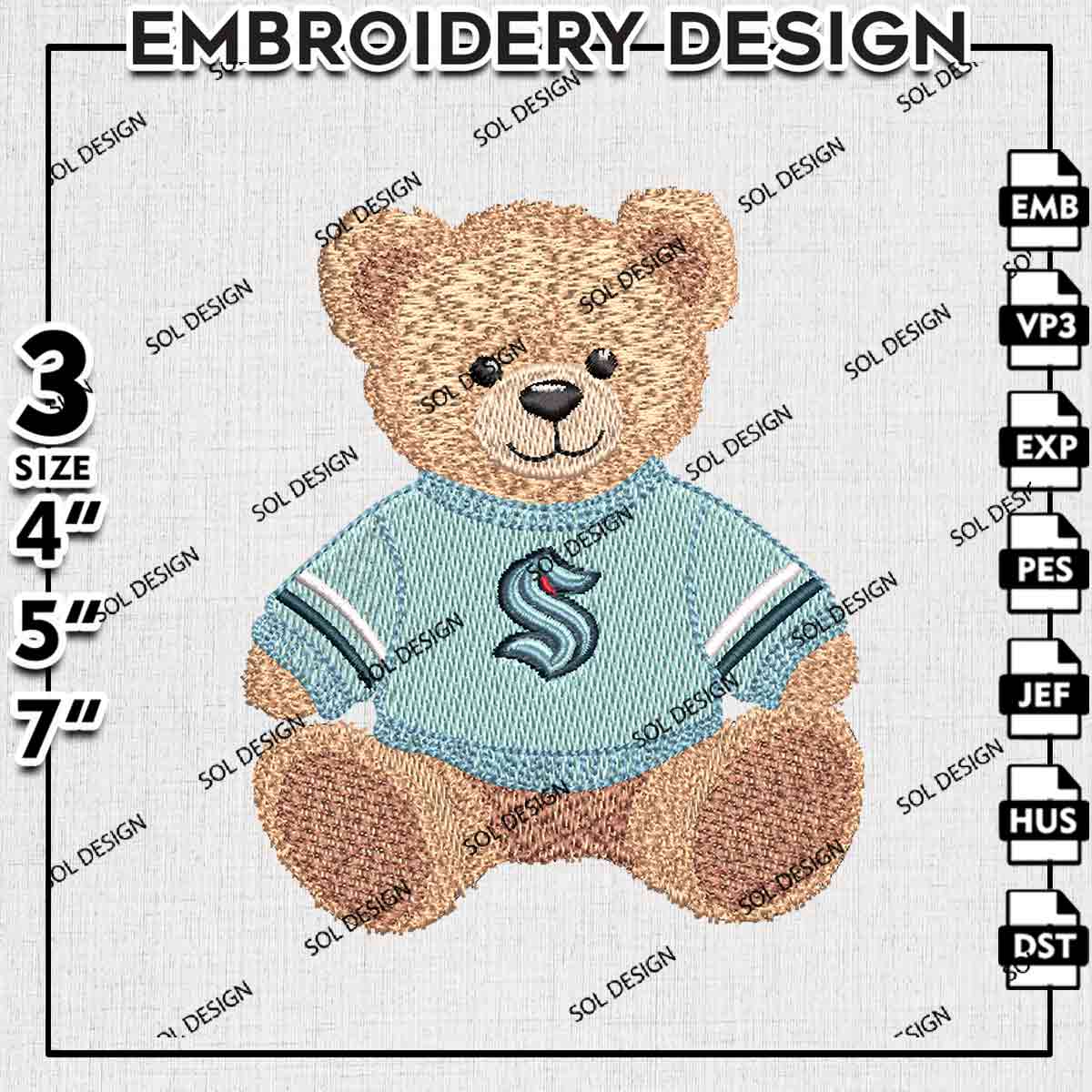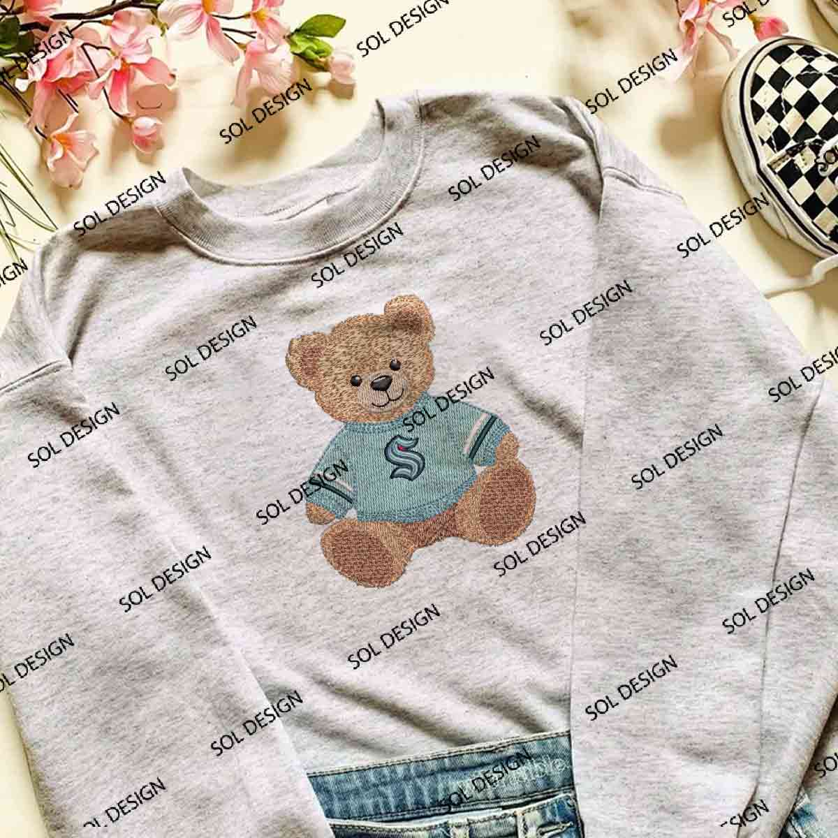 Seattle Kraken NHL Team Teddy Bear Logo Embroidery Designs, NHL Seattle Kraken Embroidery Files, NHL Kraken Logo Embroidery, Hockey League Machine Embroidery Design, Cute Teddy Bear Sport Designs, Digital Do