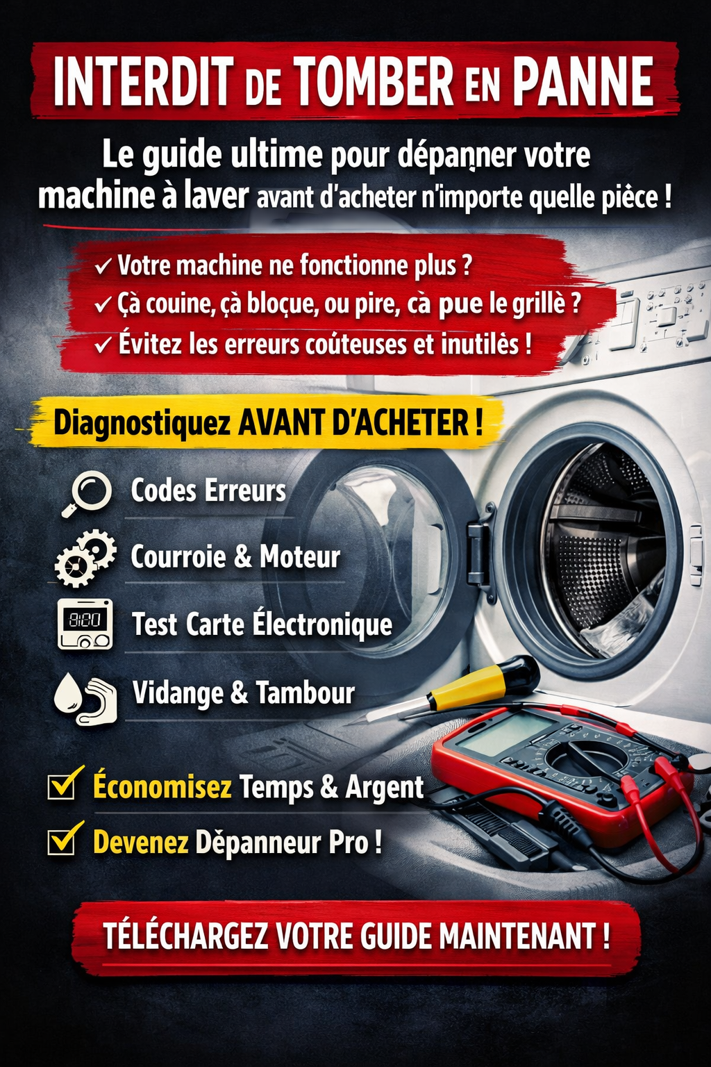 Machine à laver en panne ? Diagnostiquez AVANT d’acheter (Guide complet PDF)