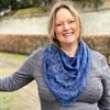 The intermediate knitter will enjoy this one-skein project. Choose a smooth yarn in a solid or semi-solid colour to highlight the pattern. The sample shawl was worked in Under the Olive Tree Knits Steni Vala 4ply yarn, a lustrous and velvety blend of merino and silk.