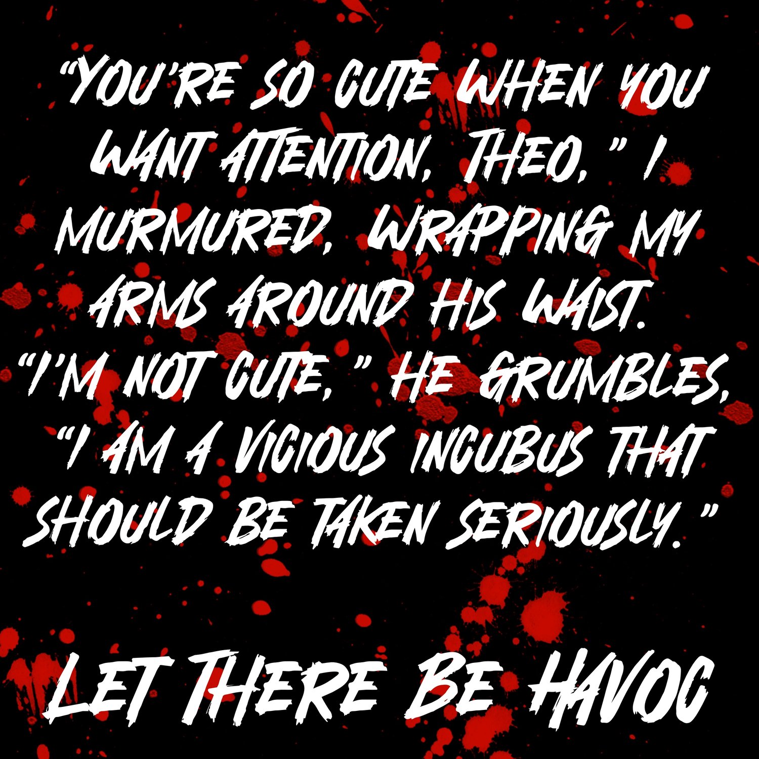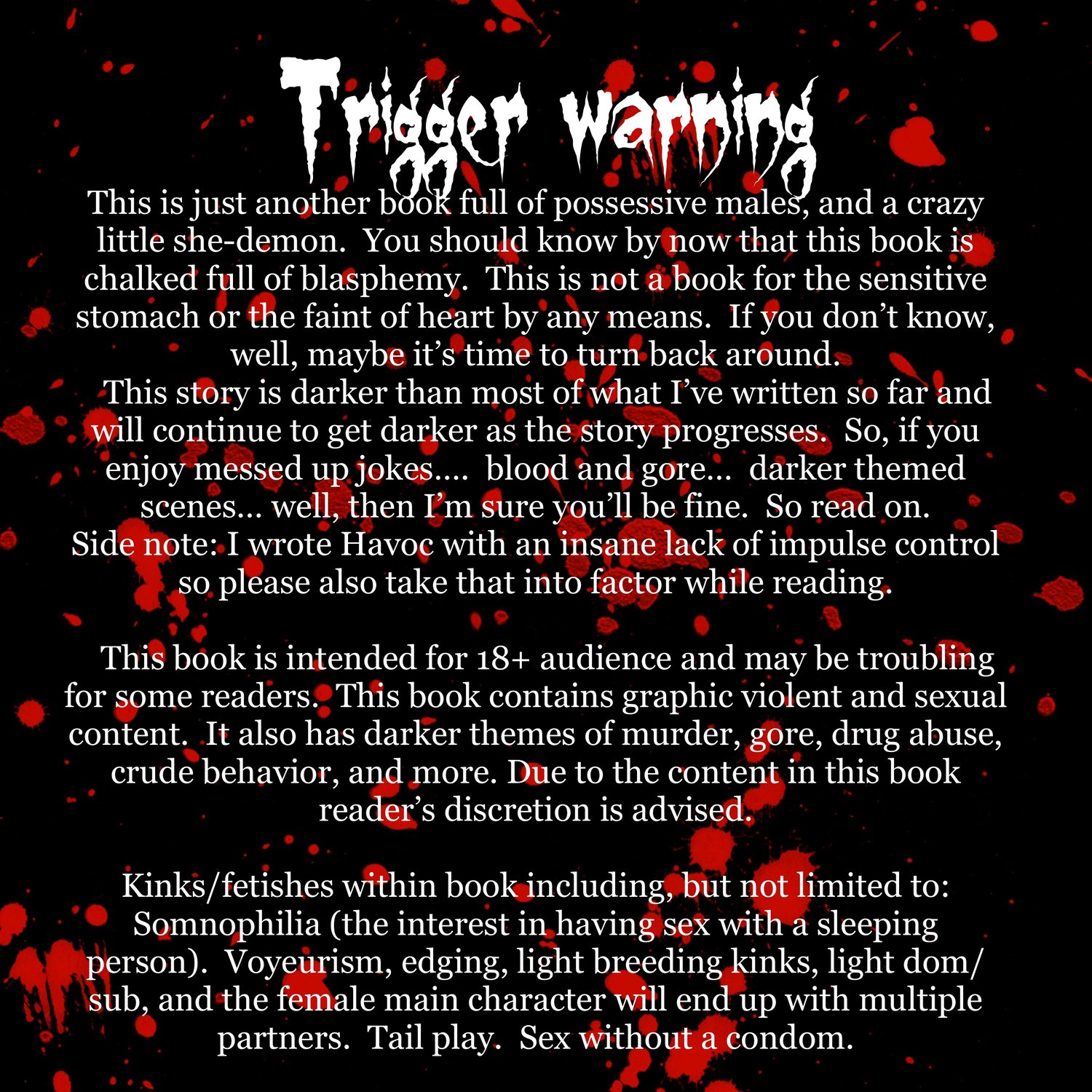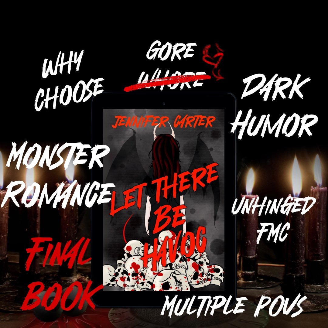 Let There Be Havoc is the third and final book in Havoc's story. For fans of unhinged female main characters, fated mates, anti hero, reverse harem, why choose, morally grey characters, dark humor, and gore.