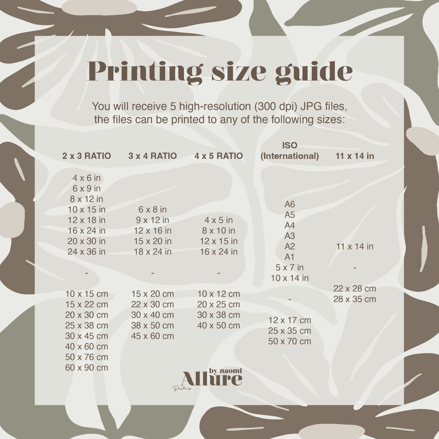 You will receive 5 zip files, each containing 2 high-resolution JPG files (300 dpi), ready to be printed in a variety of large sizes: