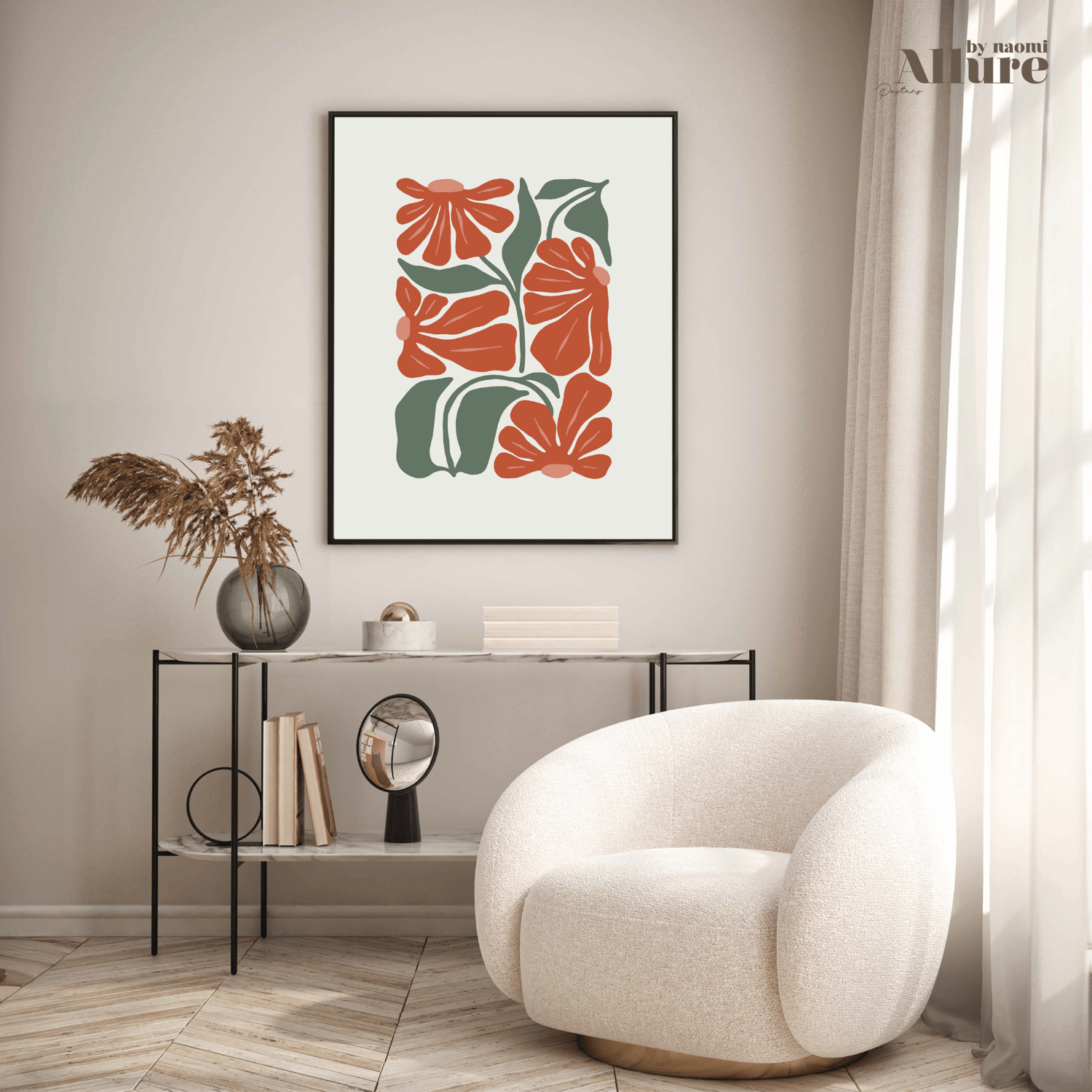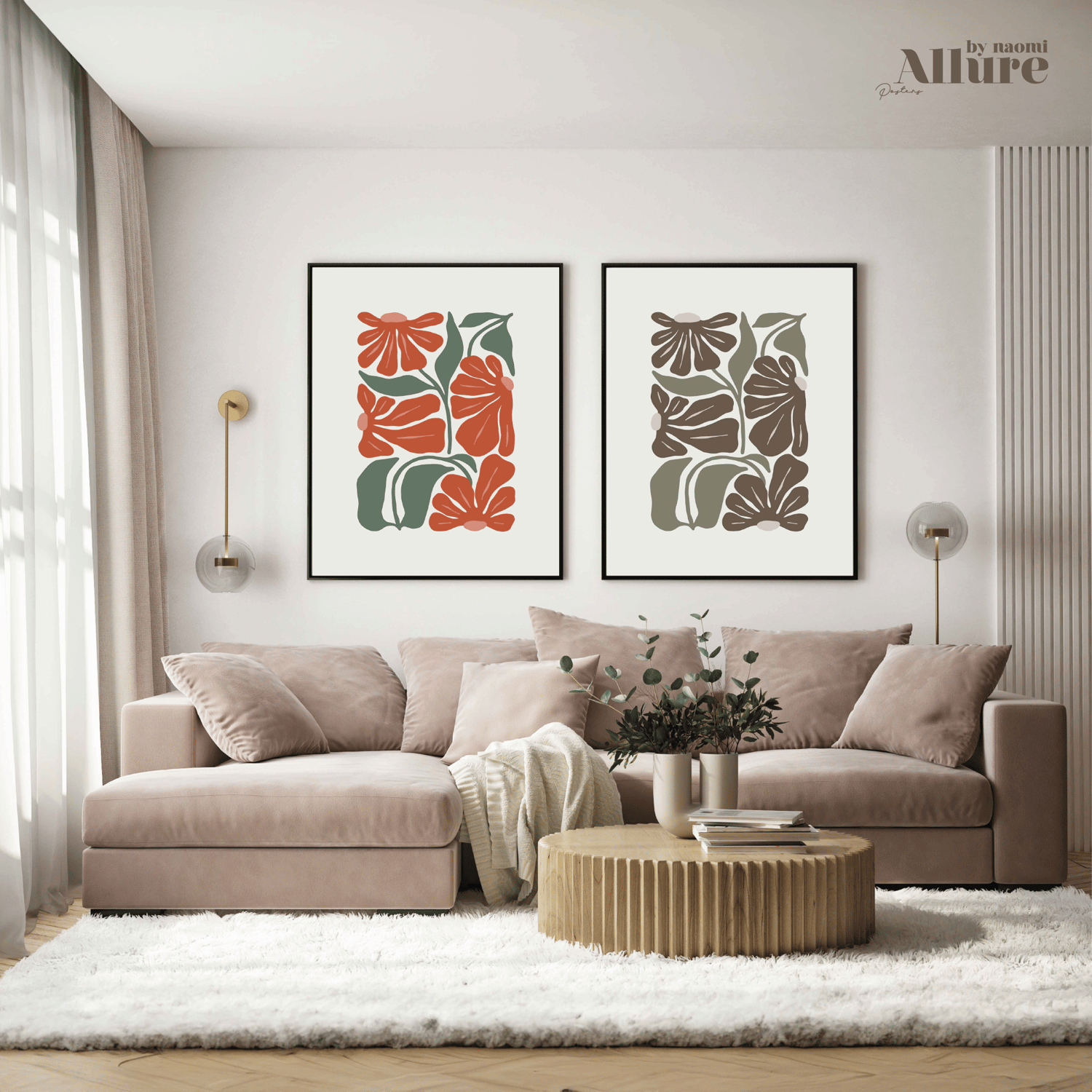 Modern Flower Printable Wall Art | Large Floral Color and Beige Digital Download | Modern Set of 2 Printable Art | Affordable Poster