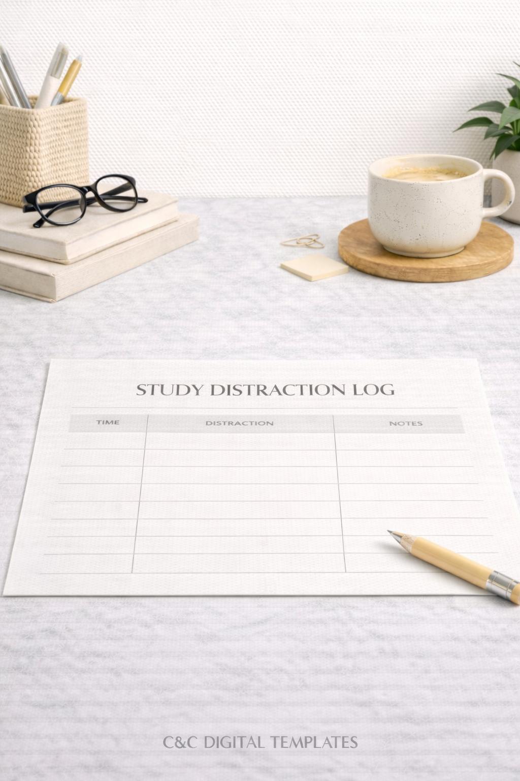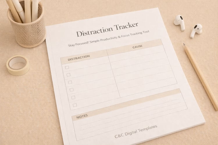 Identify and reduce distractions with this study distraction log designed for students. Build awareness and improve focus through simple tracking. Clean one-page Nordic minimalist design, editable DOCX.