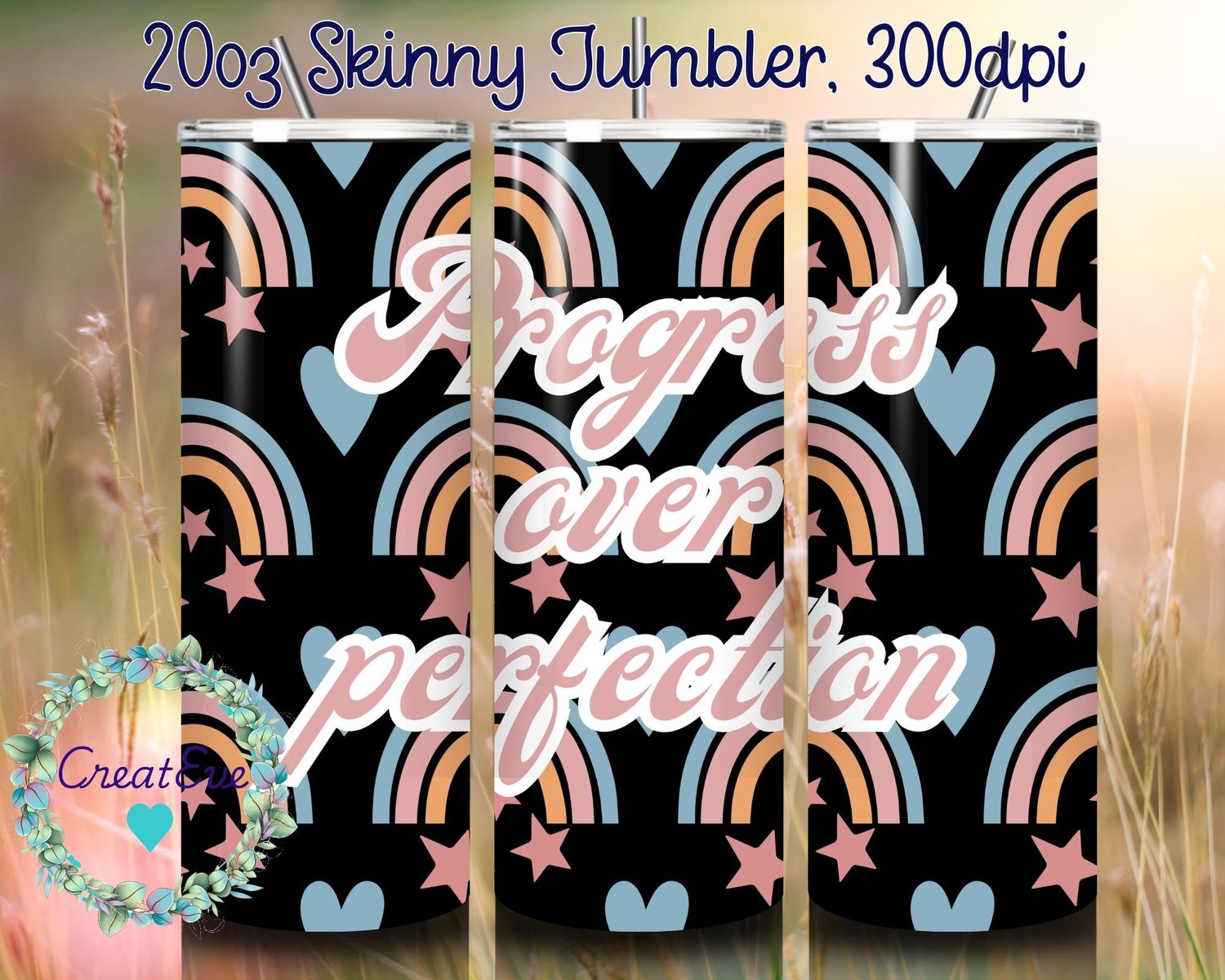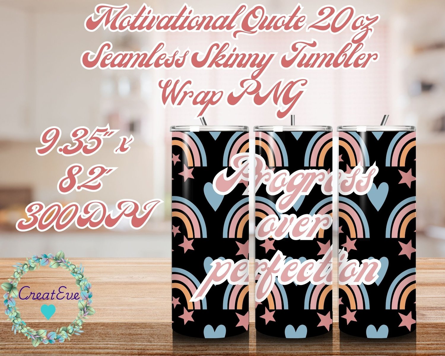 Boho Motivational Quote Retro Vibe Seamless 20oz Skinny Tumbler Wrap PNG