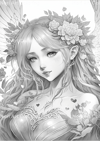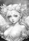 14 Grayscale coloring pages of beautiful angels, some of them with the theme "Valentine's Day". Vol 3.