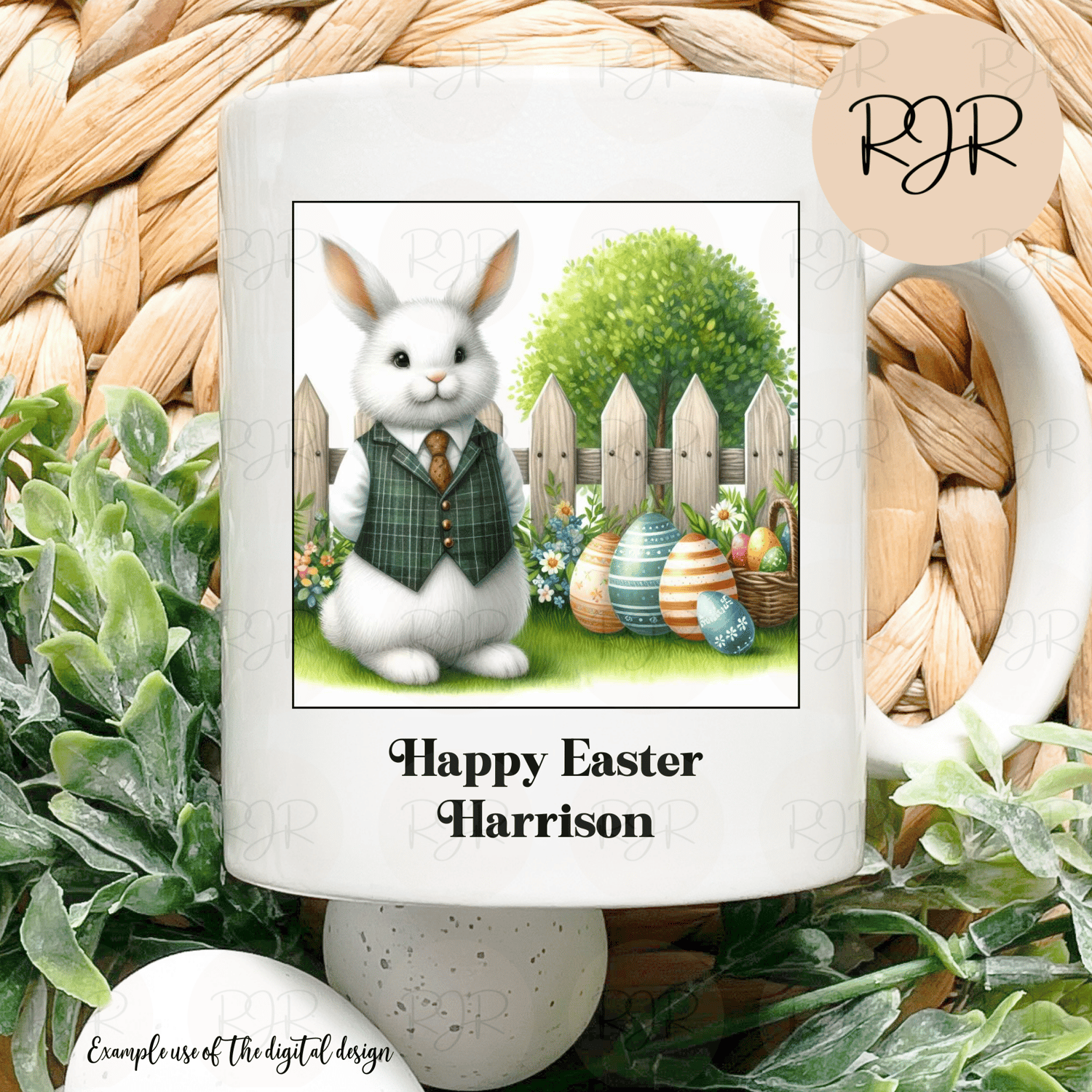 White Bunny Easter Scene