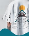 A bold shark illustration designed for printing on clothing and physical merchandise.