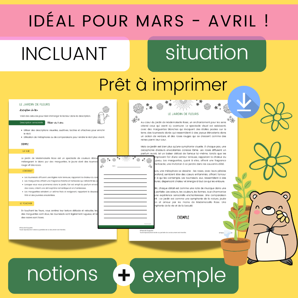 Situation d’écriture Printemps – Décrire un Lieu (Jardins de Fleurs) – Écriture descriptive 2e-3e cycle