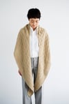 A crescent-shaped shawl with beautiful diamond patterns, knit with cables. The border on the edge is knit in garter stitch. A large piece, the shawl drapes beautifully. Knit in Woolfolk Får, it will wrap your shoulders like a dream.