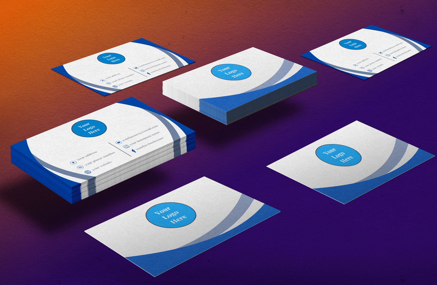 On the back side up&middle a logo placeholder, below address, phone number, website,email, Facebook and Instagram account address.