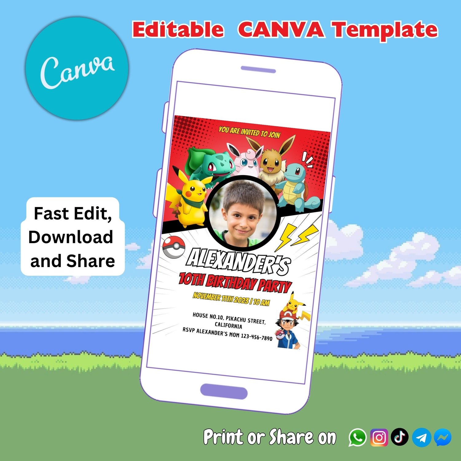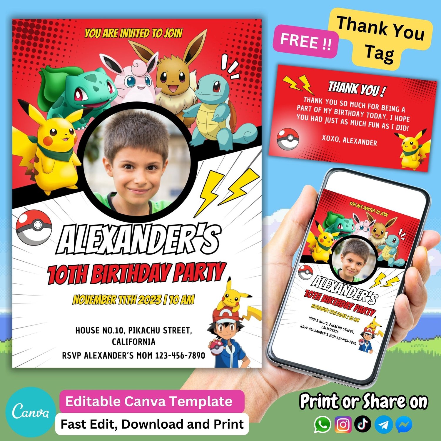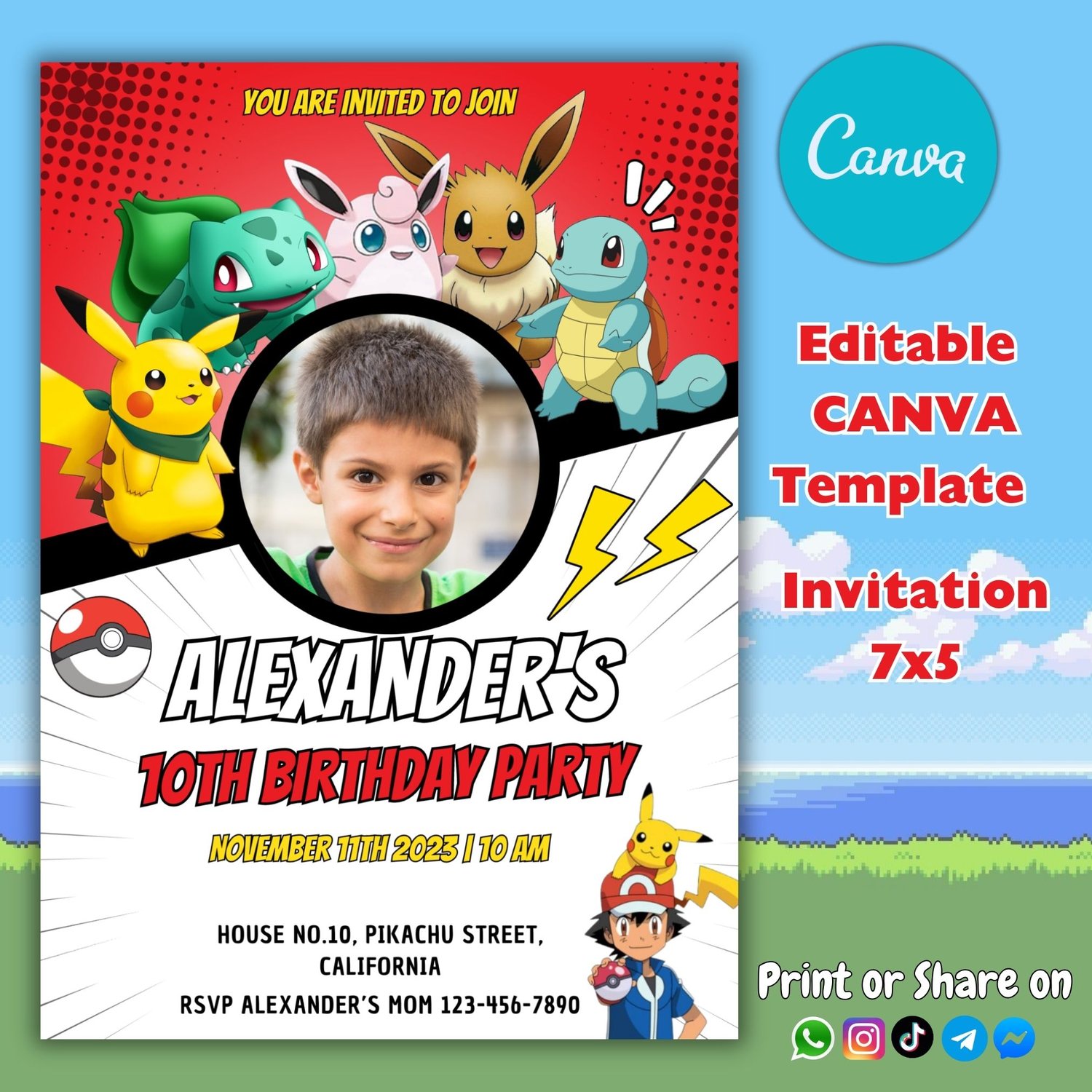 Pokémon birthday invitation Template