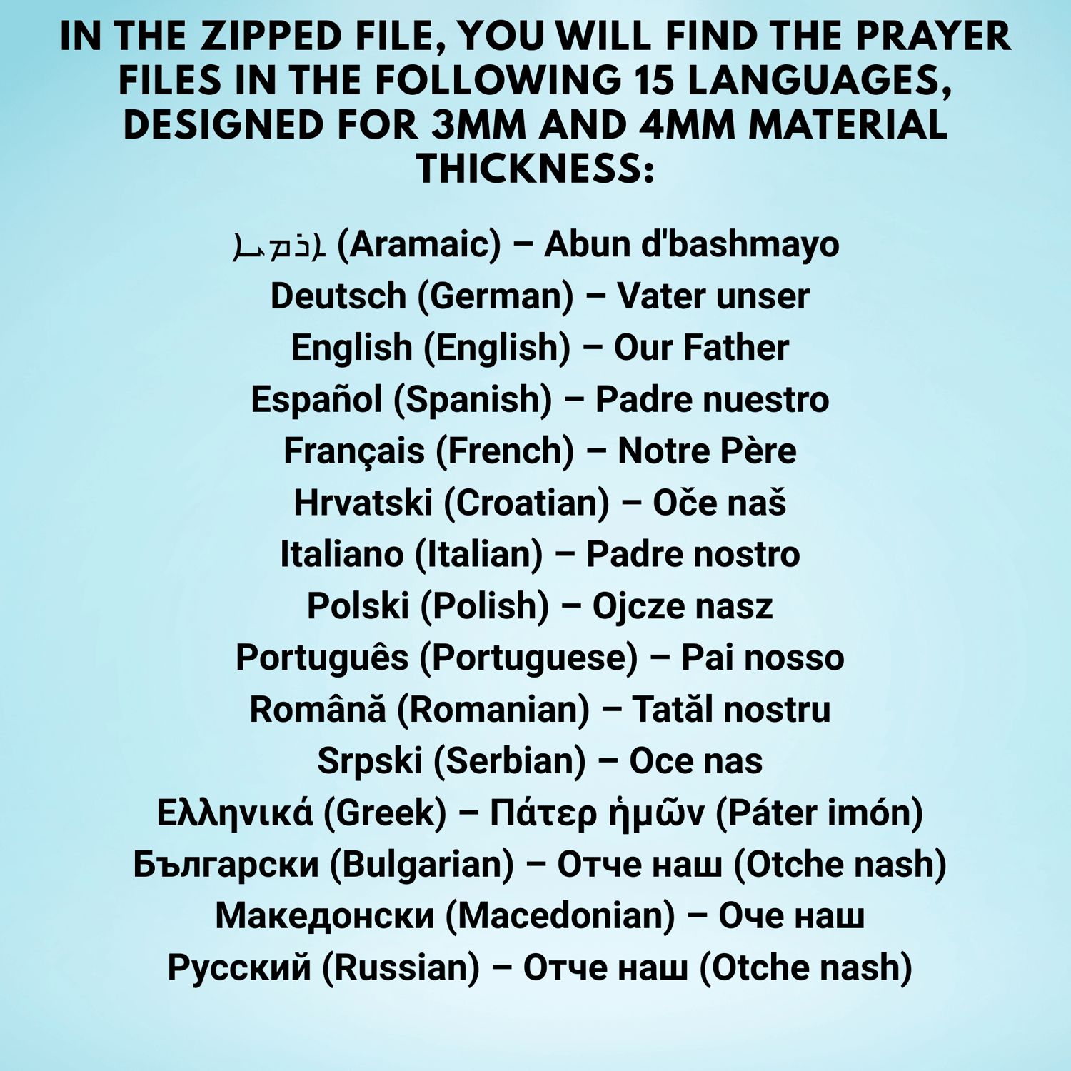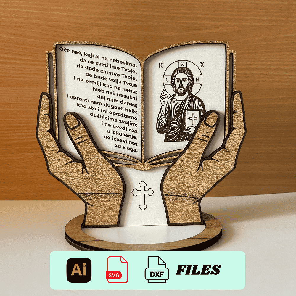 Prayer Book Stand | Our Father Prayer in 15 Languages | Laser Cutting Files | SVG DXF AI | 3mm and 4mm