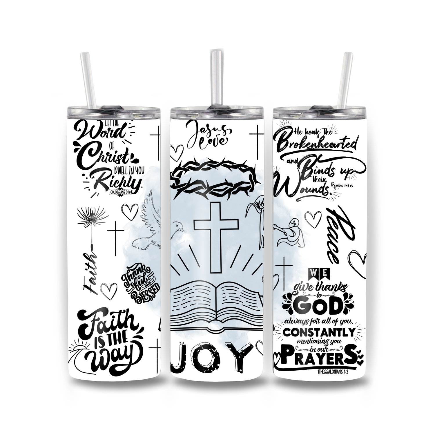 ✨ Christian Scripture & Symbols 20oz Skinny Tumbler ✨