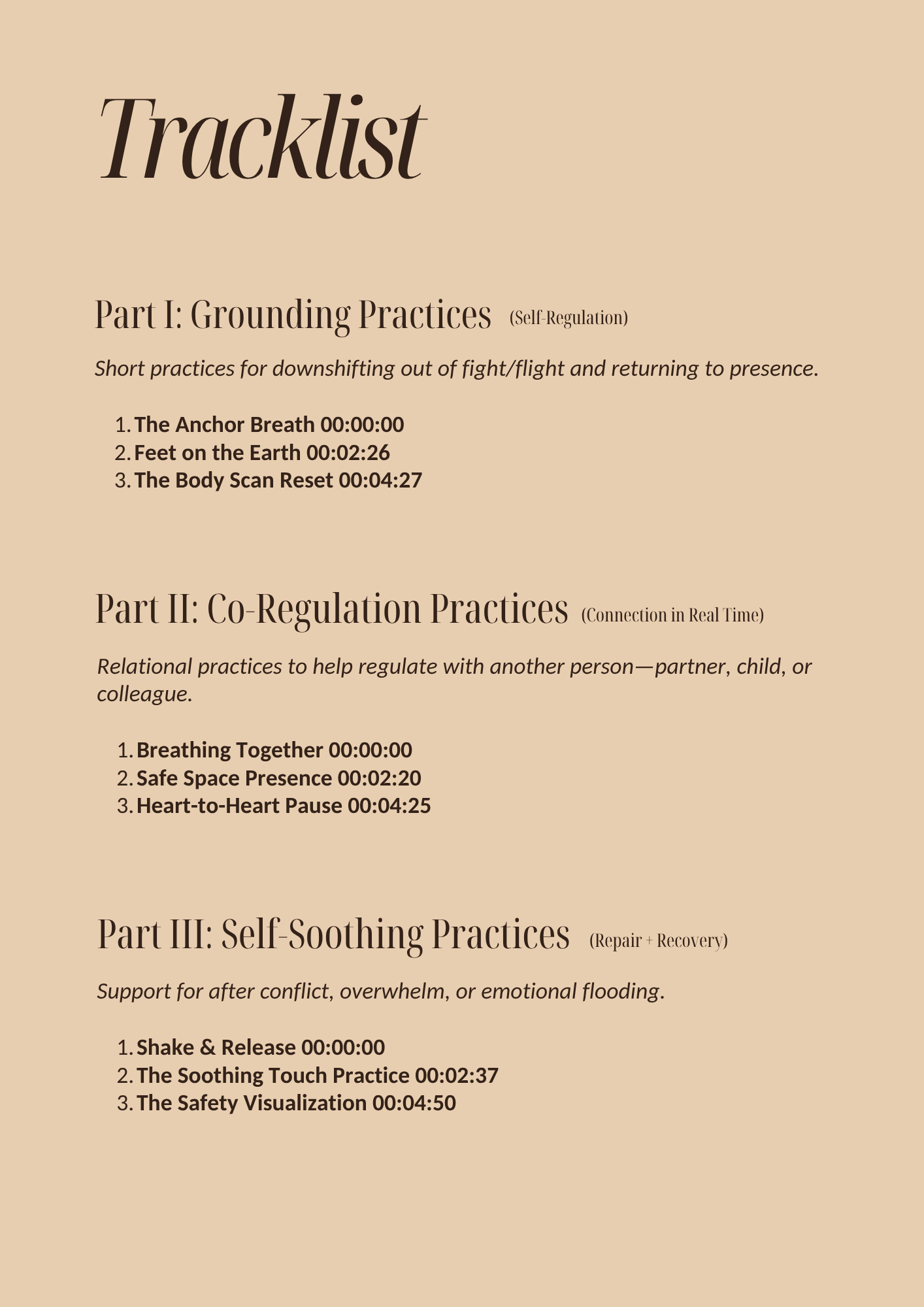 15 potent practices to "Regulate → Align → Embody → Connect → Integrate" in real time.