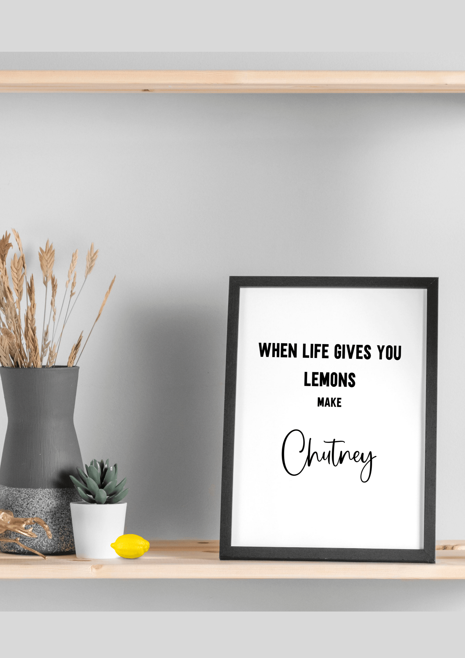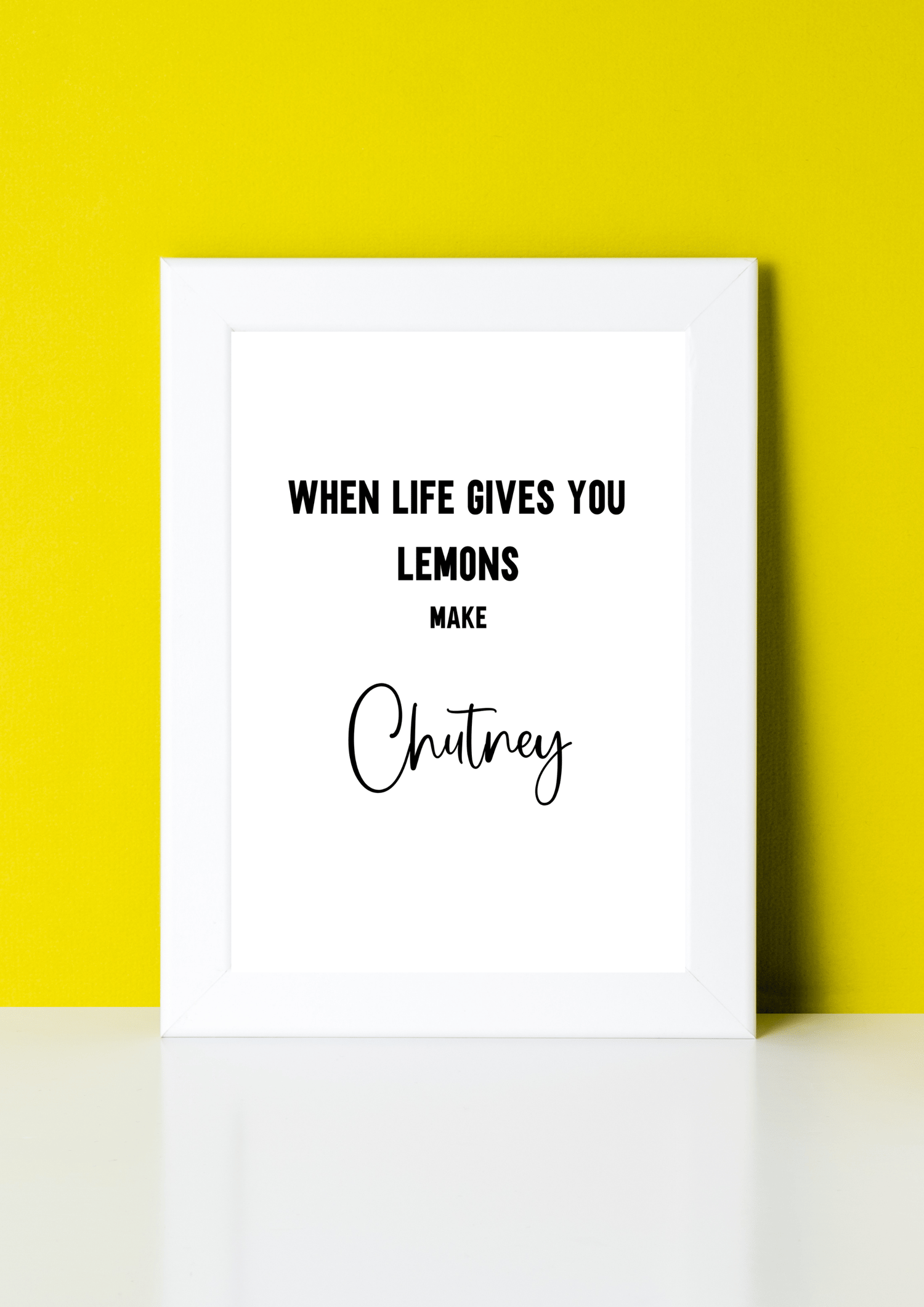 Funny Digital Print with text “When Life Gives You Lemons Make Chutney”-Lovely Inspirational Motivational Quotes about Life-Pretty Home Decoration Art Wall or Office Wall Art-Change Quotes-Happiness Quote-Uplifting Quotes