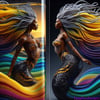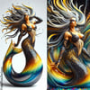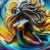 Reflection of the Siren's Soul are abstract masterpieces that delve into the realms of duality and self-reflection. The artwork captures the essence of a stunning mermaid, her form a mesmerizing blend of ethereal beauty and aquatic grace. Yet, beneath the surface, there lies a deeper narrative of inner conflict and contemplation. The mermaid's figure is mirrored, reflecting both her physical presence and her inner turmoil.