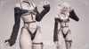 A swimsuit-like set with ribbon wrappings, chains, crosses and o-rings.