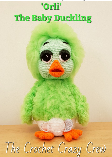 We would like to introduce to you 'Orli The Baby Duckling' this creation is inspired by a popular 1980's styled cute british duck, he stands at approximately 15" tall, is written in US Terminology and is worked in basic stitches and rounds, included into this pattern is the following:-