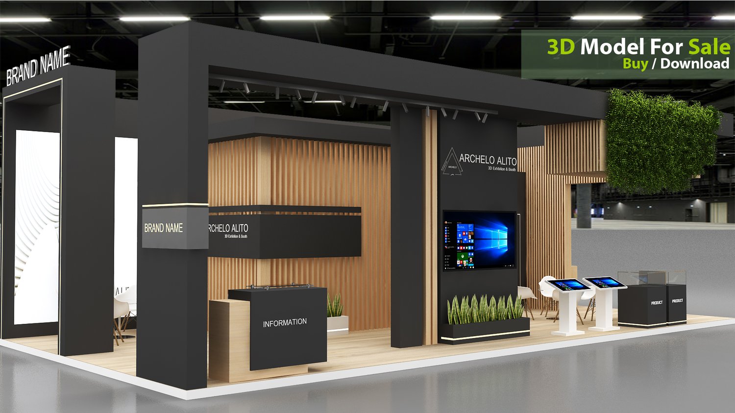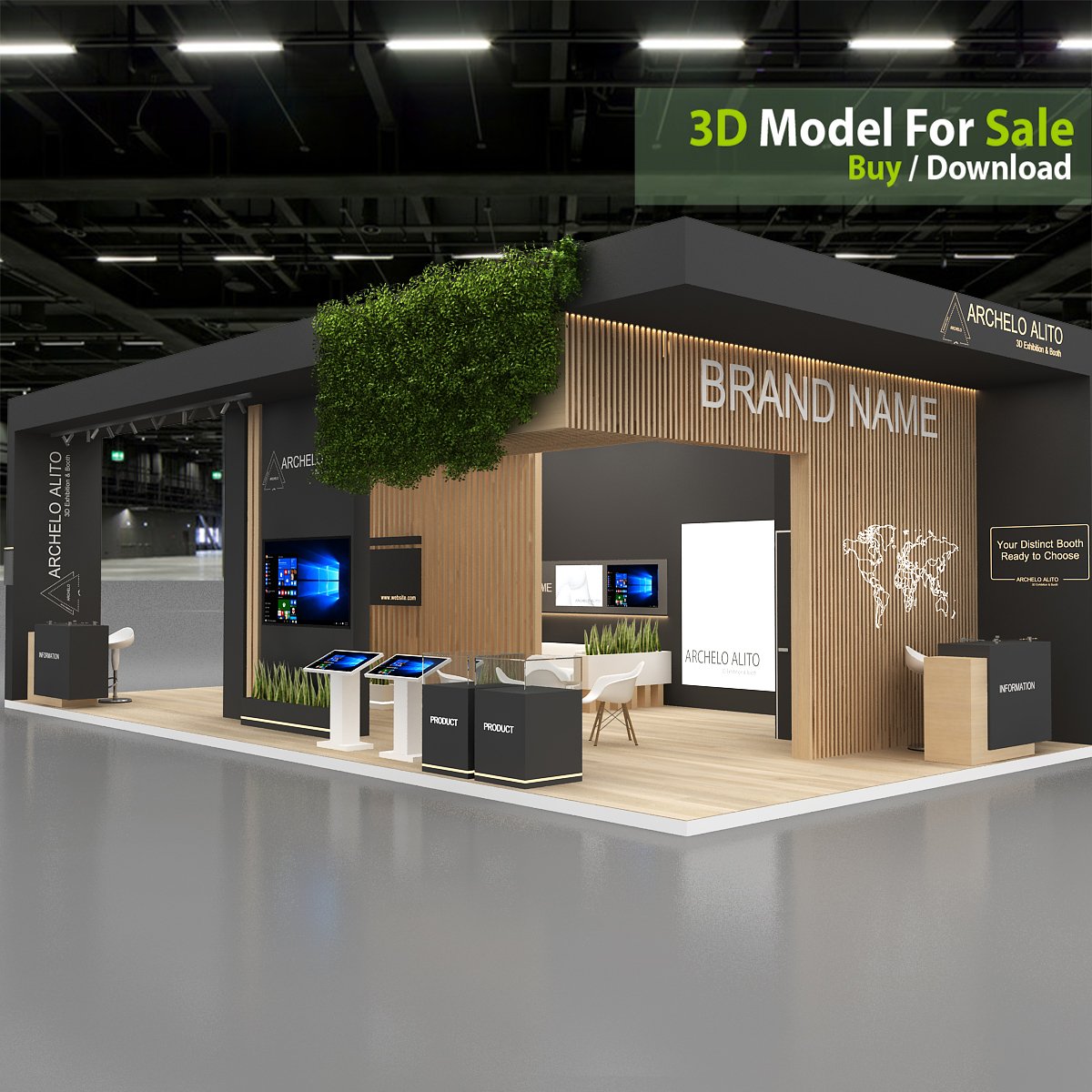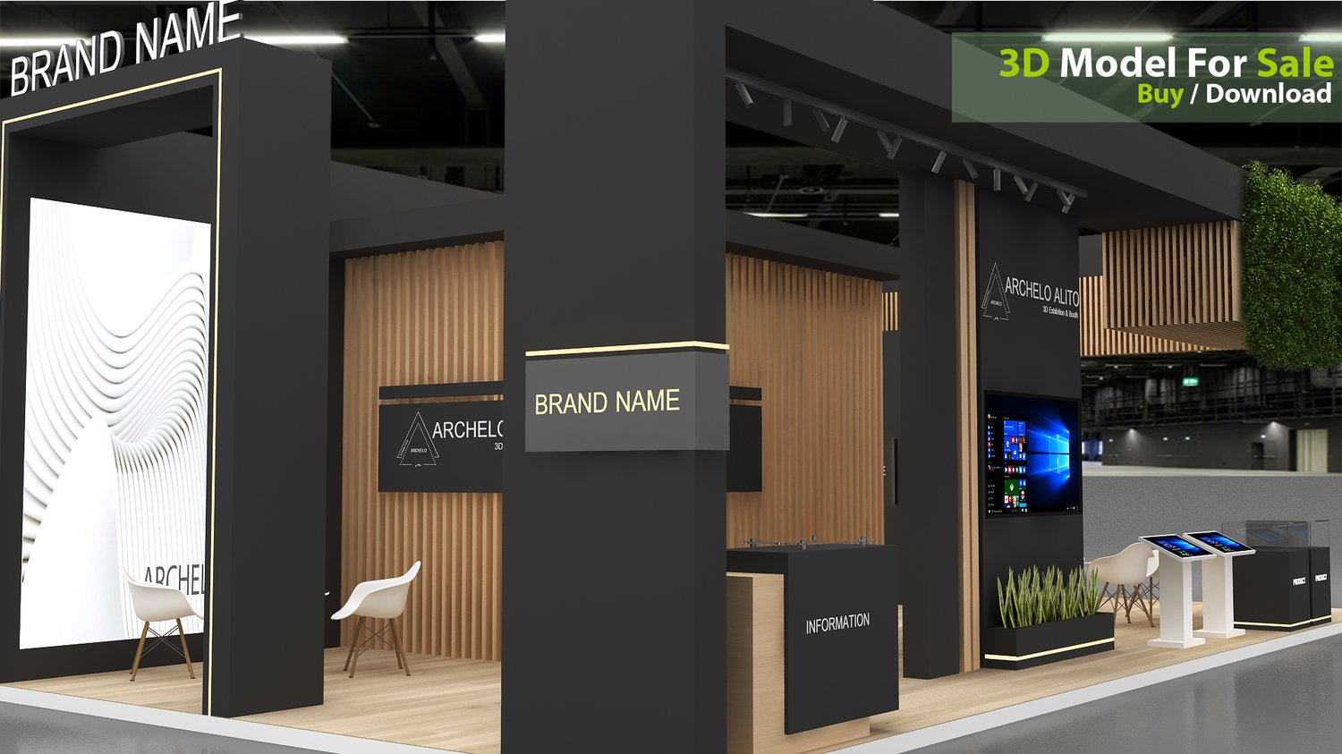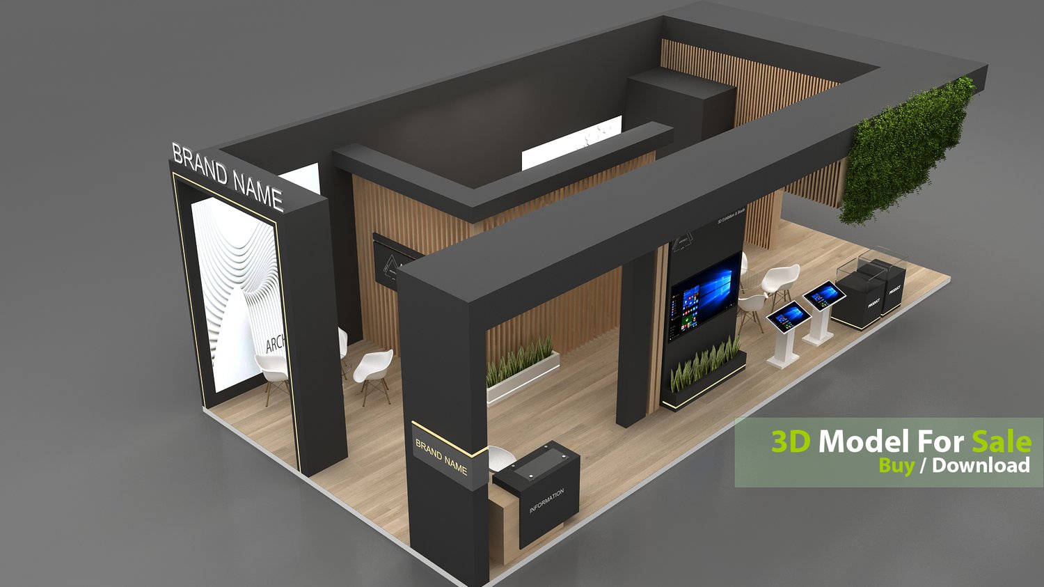 This professional 3D booth model is designed for exhibitions, trade shows, expos, fairs, and event displays.