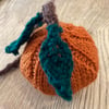 This mini pumpkin is eventually going to part of a larger Halloween Garland, but it will work well as a decoration on it's own - if you don't want to hang it, you can knit a shorter stalk.