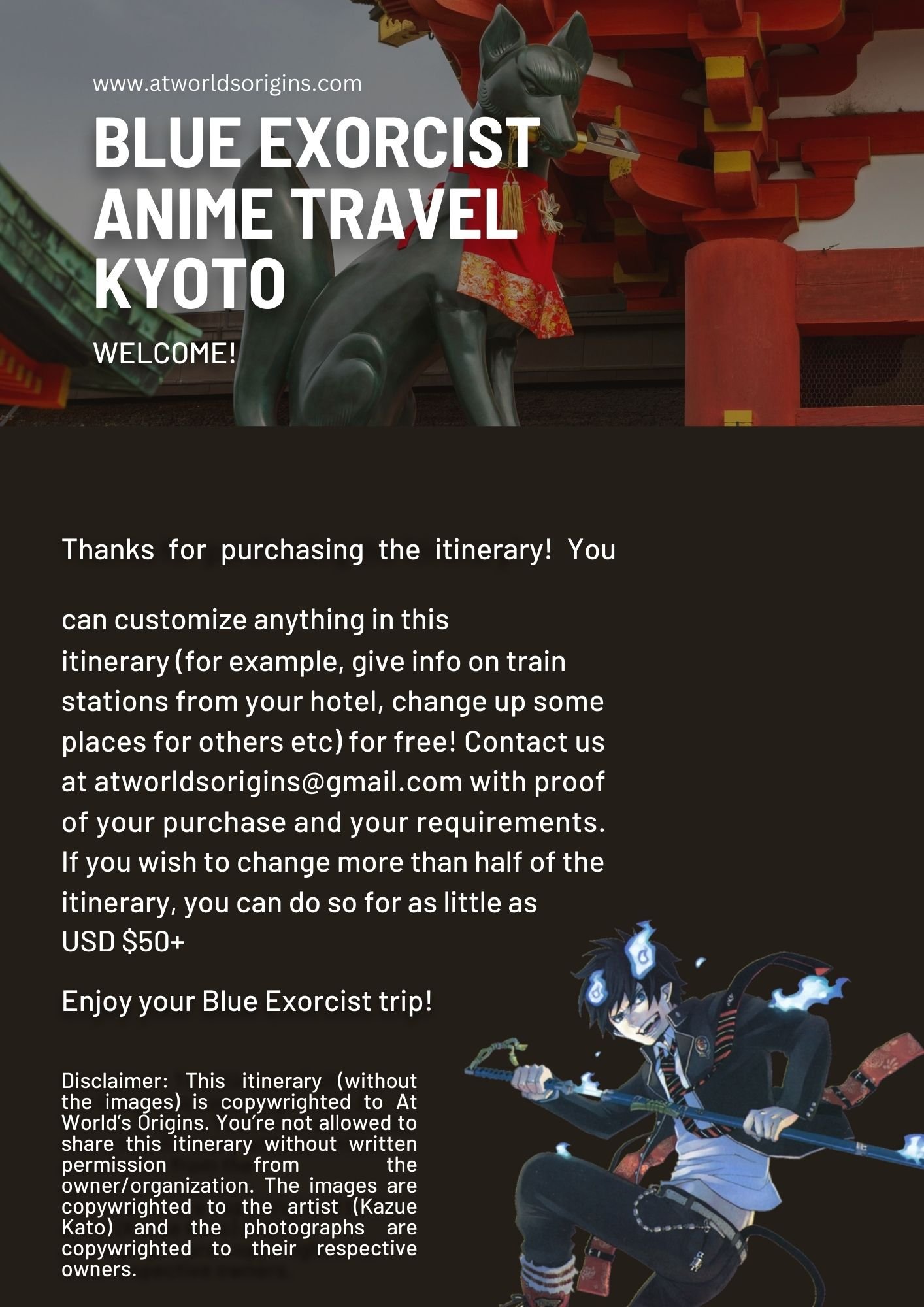Blue Exorcist Kyoto Saga Itinierary - 2 Day Self Guided Tour