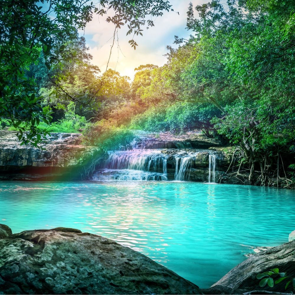 Step into a lush, sacred rainforest where hidden within the trees are seven glowing healing pools… each one a different colour, each one aligned with a different chakra. (Music fades out as you enter the healing waters) In this immersive guided meditation, you will journey through warm, mineral-rich waters designed to cleanse, activate, and rebalance your energy centers , from the grounding red root pool to the radiant violet crown spring and then finally experiencing a healing rainstorm.