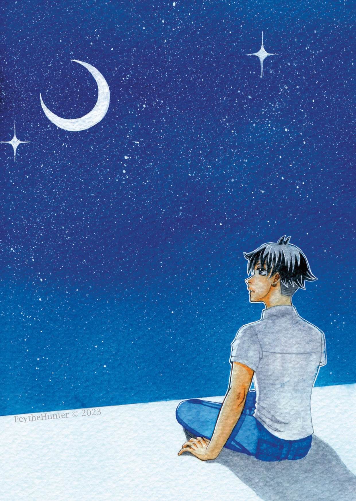 Ein nächtliches Motiv mit Adrian, einem der beiden Hauptcharaktere aus "Zwischen zwei Seiten".