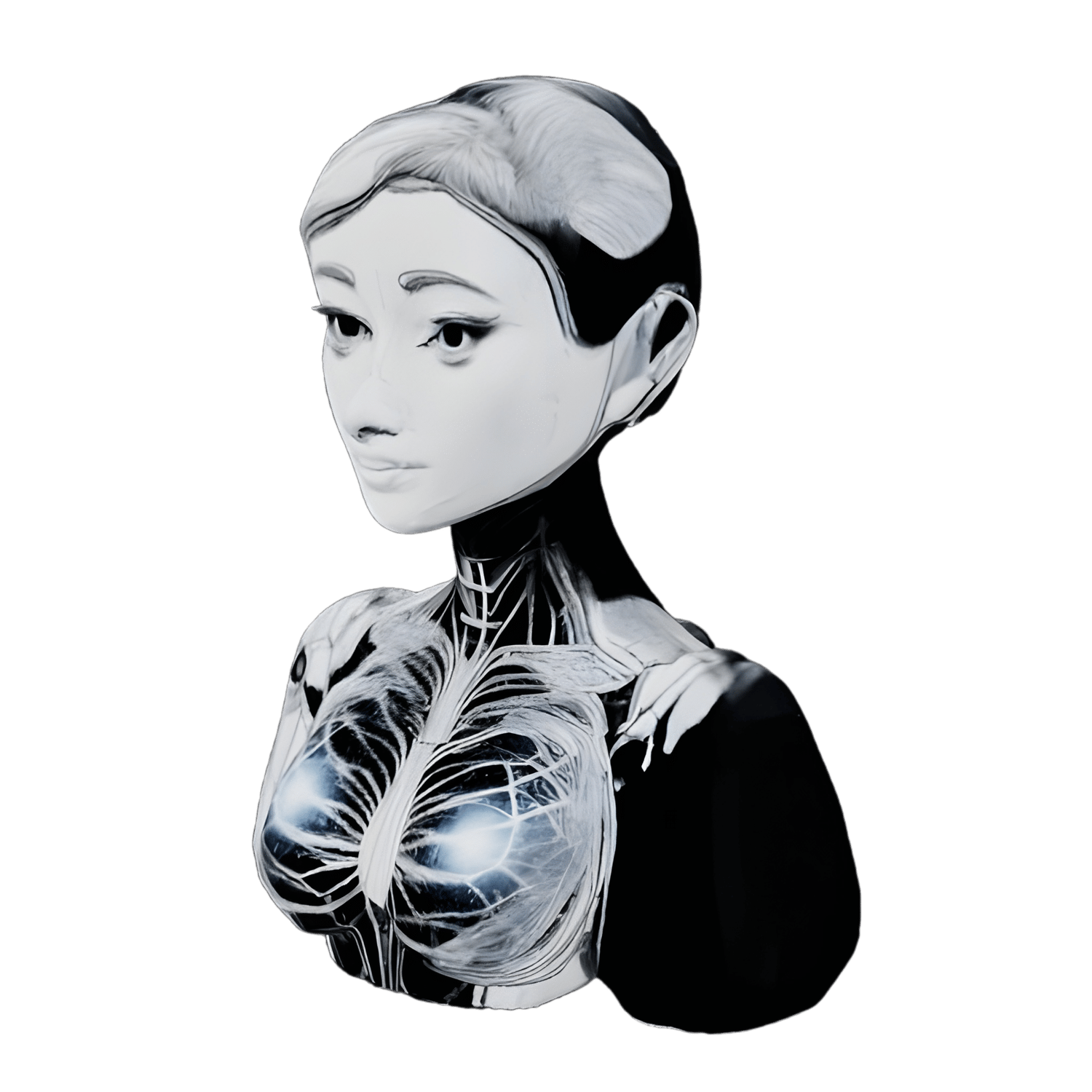 Hey there! This fascinating collection features four variations of an android/cyborg feminine bust design, each with its own unique artistic interpretation. The models showcase a beautiful blend of organic and mechanical elements, perfect for collectors and tech-art enthusiasts!