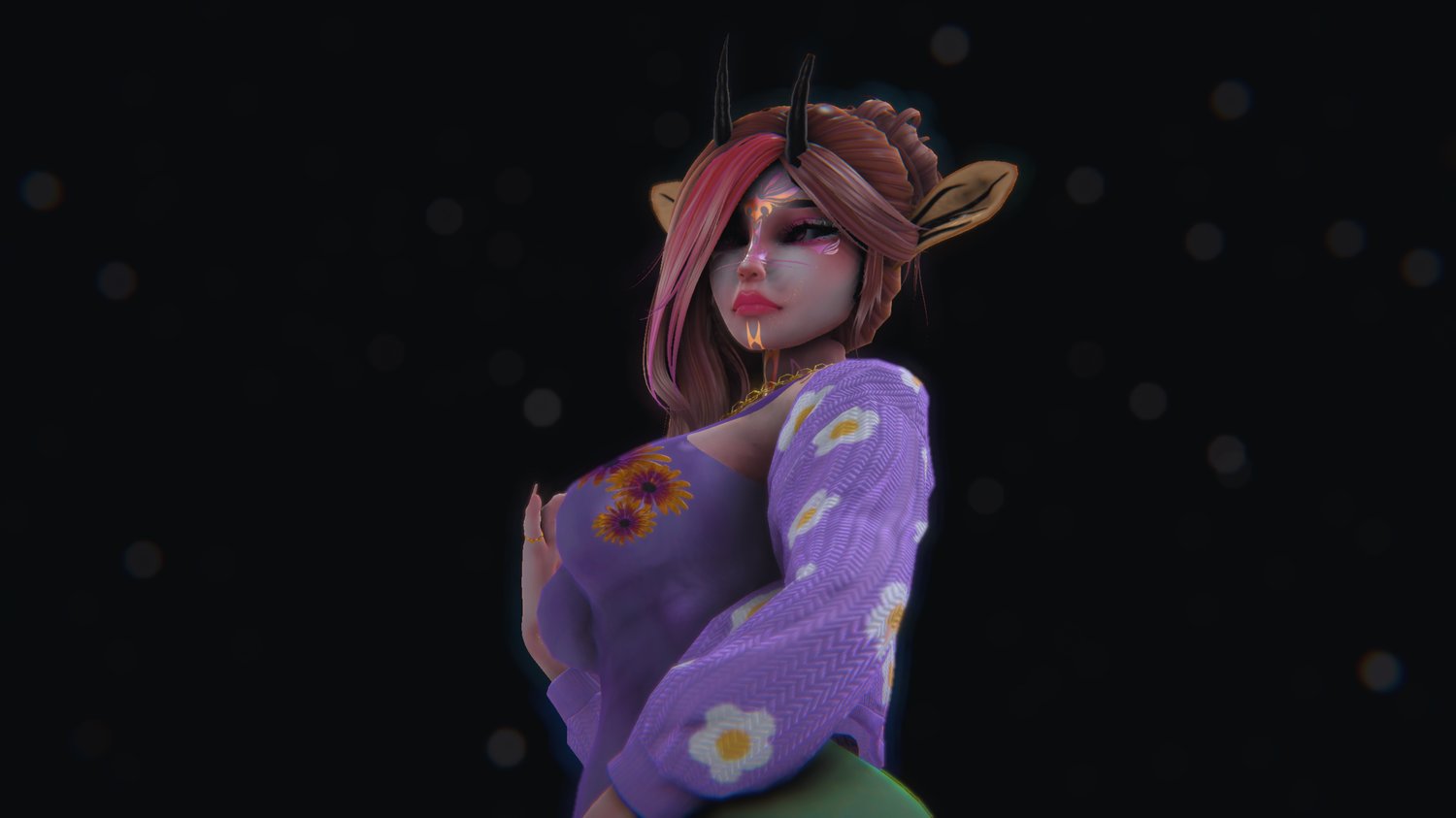 (Top, Pants, Panties, Short Heels, Sun Dress, Sleeves, Necklace, Ears, Tail, and Horns were all made from scratch by me along with their textures. She also has custom icons I drew~)