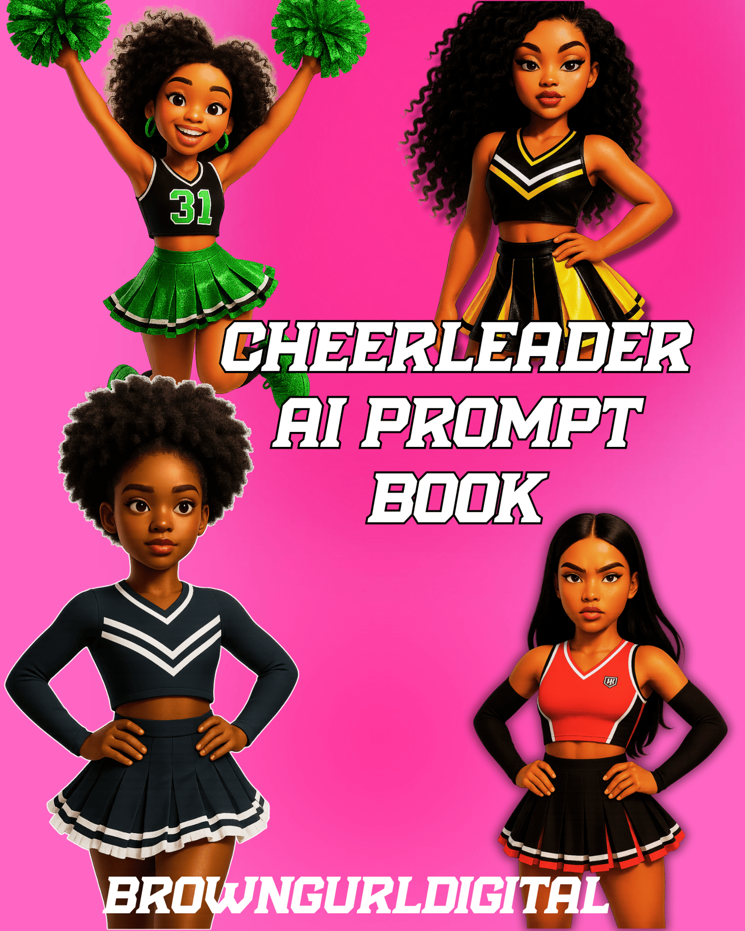 Show off the energy and style of cheer with the Cheerleader AI Prompt Ebook. Packed with detailed prompts, you can easily create vibrant cheerleading visuals for merch, scrapbooks, and event designs.