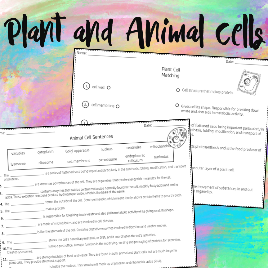 Plant and Animal Cells Worksheets