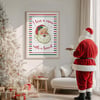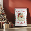Designed with classic red and green stripes and a cute retro Santa illustration, this artwork makes a perfect seasonal decoration or a fun gift for Christmas lovers.