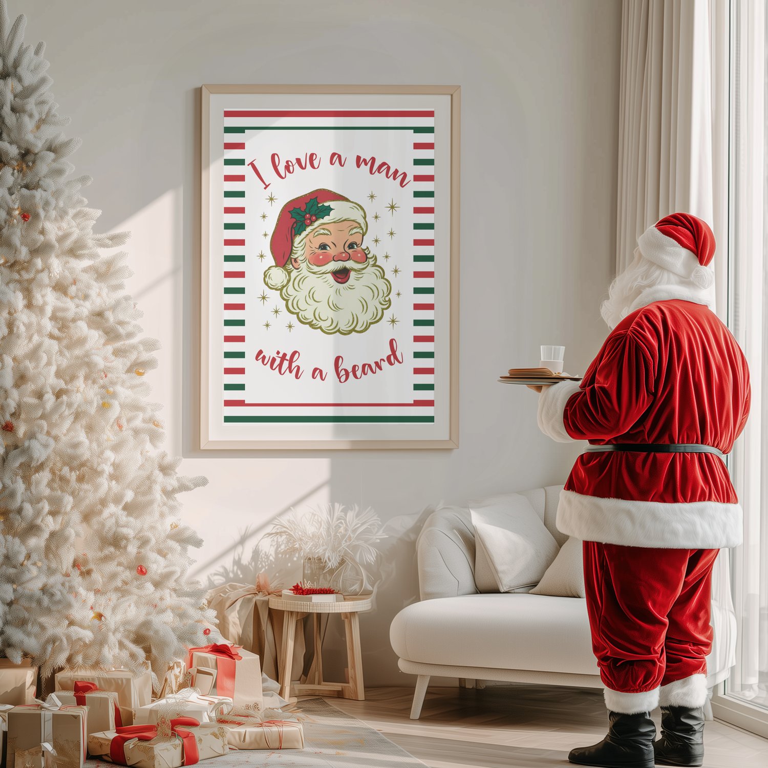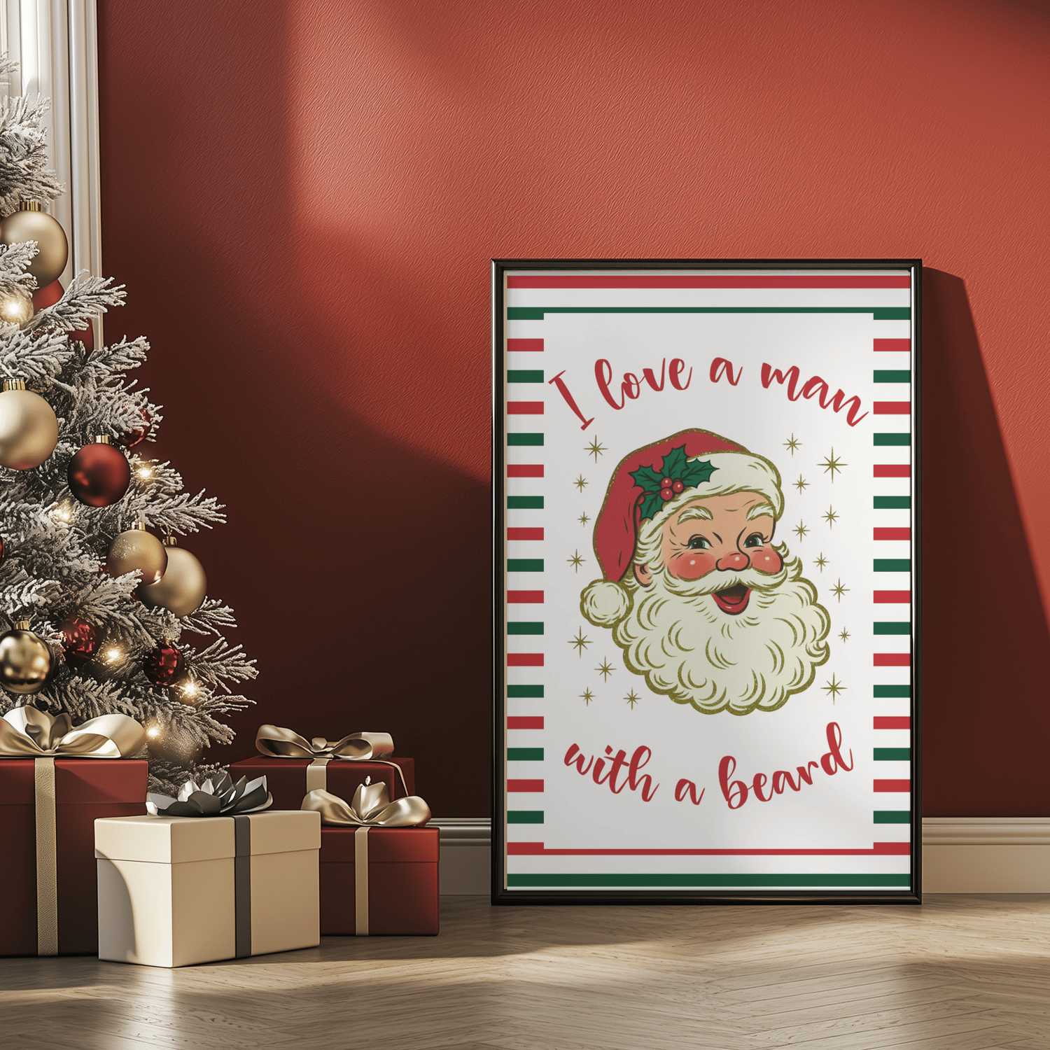 I Love a Man With a Beard Christmas Wall Art, Retro Santa Print, Vintage Holiday Decor (Digital Download)