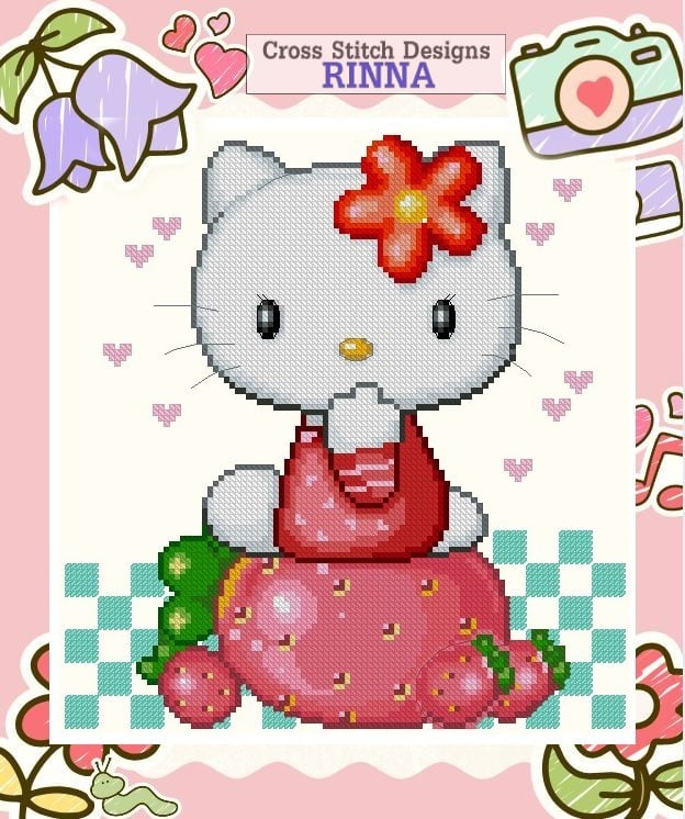 Cute Kitty on Strawberry - Cross Stitch PDF Downloadable Pattern
