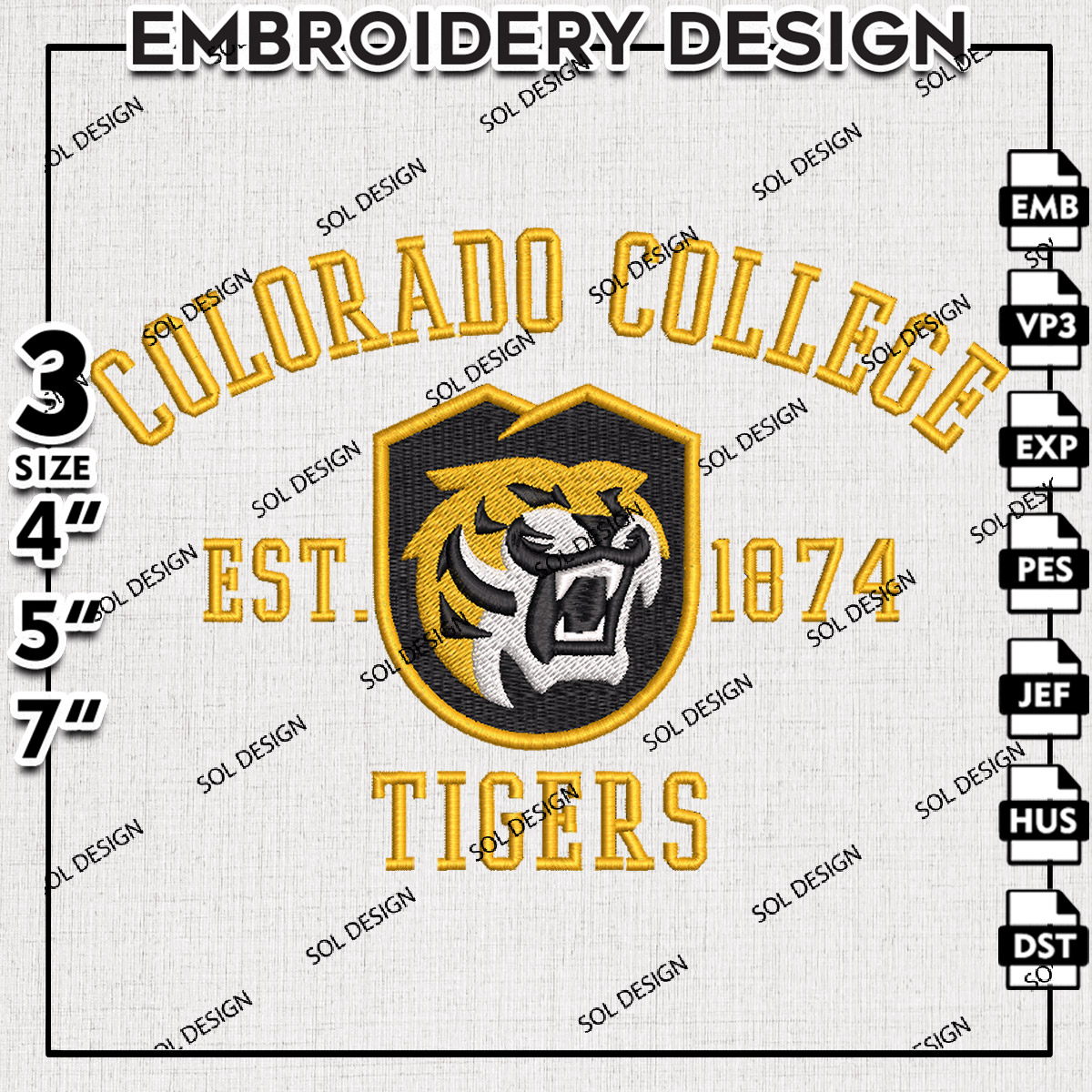 Colorado College Tigers Football Team Est Logo Embroidery Designs, NCAA Colorado College Tigers Machine Embroidery Files, NCAA Logo embroidery designs, Ncaa Colorado College Logo, Digital Download