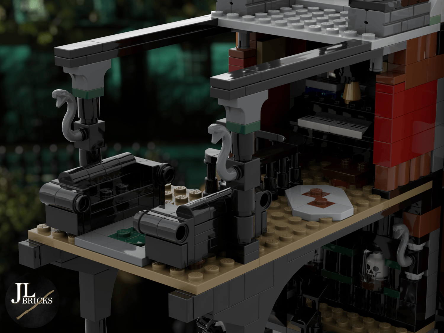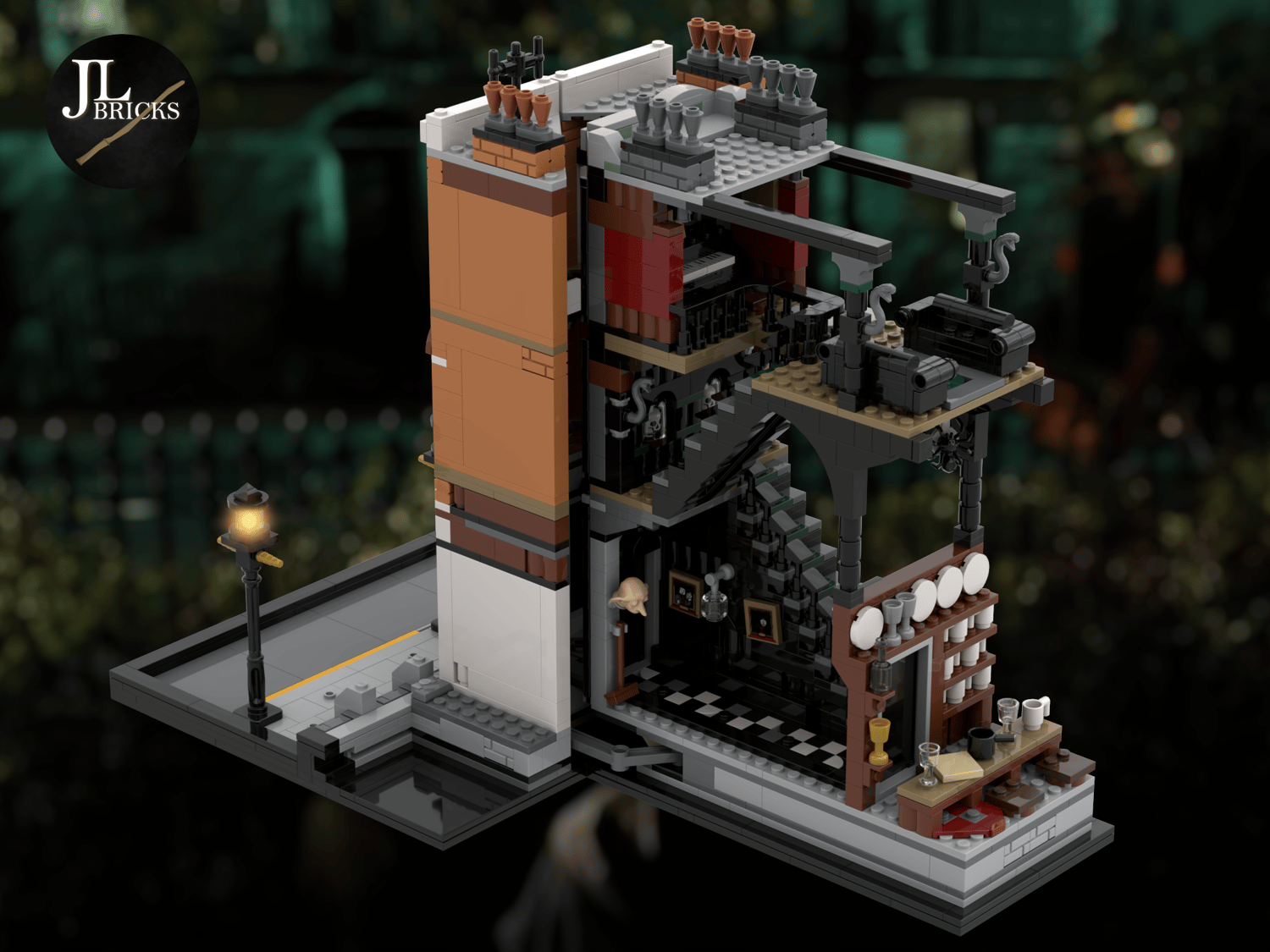 The new base of the model with the street doesn't interfere with the functionality of the set. In addition, I improved the facade of the whole building by adding more details (e.g. the tips on the fences).