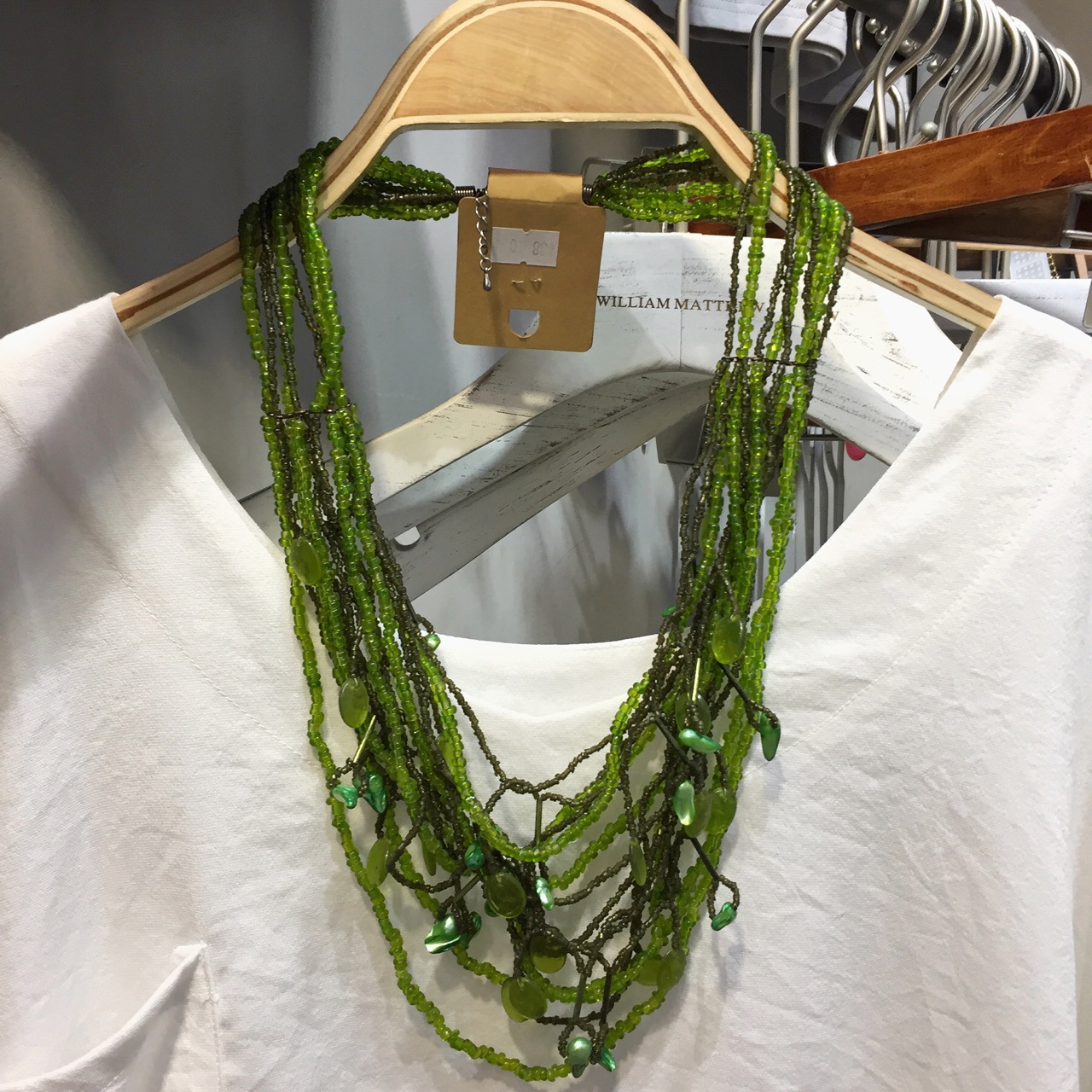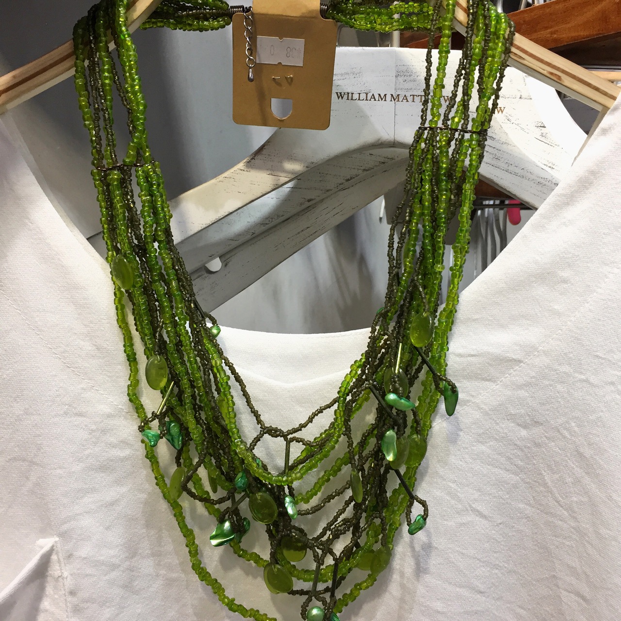 Handmade ethnic boho beaded green layering long necklace