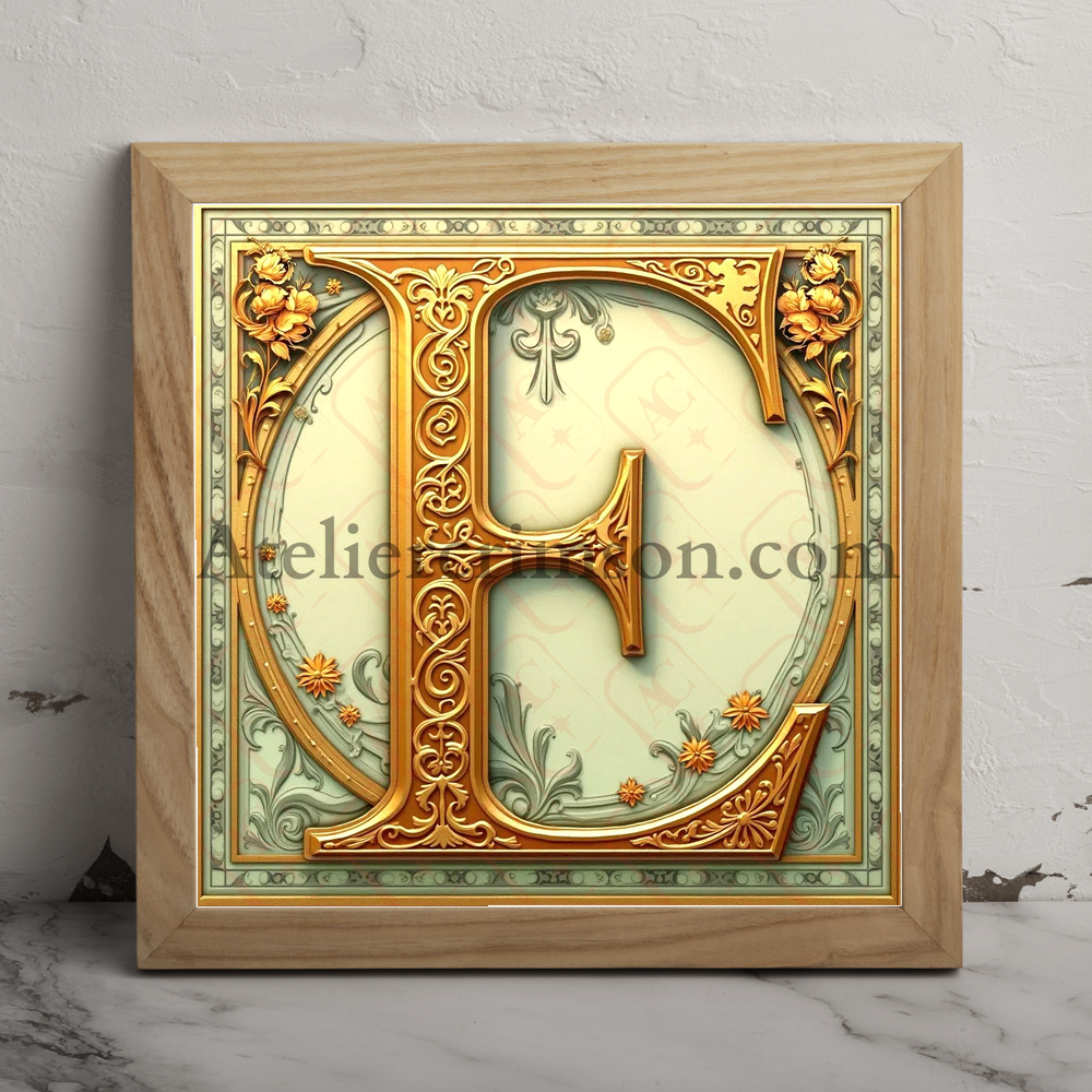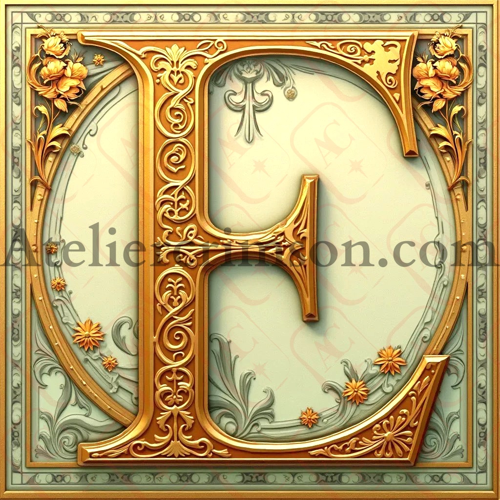 The letter E gold metal art nouveau Download Now this high quality AI-generated image, perfect for adding a touch of tranquility and creativity to any space.