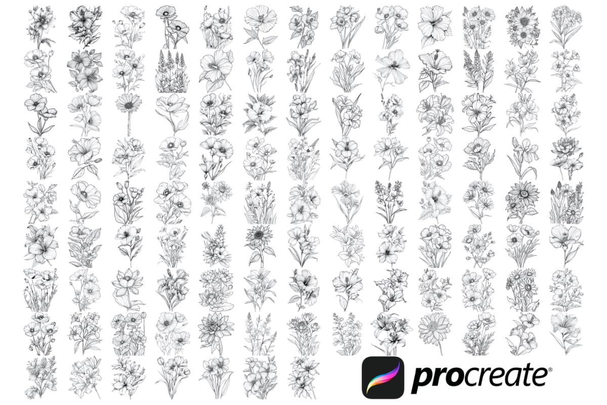 - 111 Floral stamps for Procreate