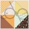 13 - 6x6 sized (1800 x 1800 px) pattern and solid color cards as half-square triangle quilt squares with stitching down the diagonal