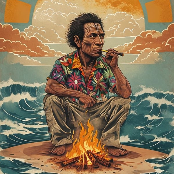 This artwork is a tribute to the guardians of island heritage β resilient, bold, and deeply connected to the elements.