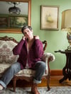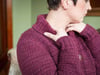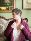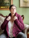 This elegant cardigan features a towering shawl collar, a graceful set-in sleeve, hip shaping, and optional bust shaping.