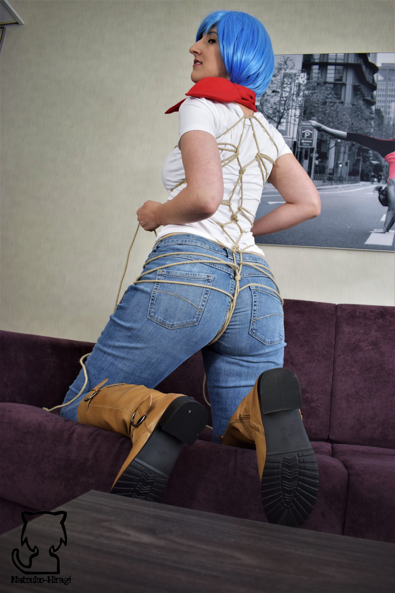 Kitty cosplaying as: Bulma (Dragon Ball Super)
