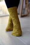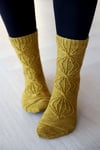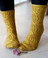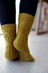 Allium cepa is a relaxed and fun sock pattern worked cuff-down. The socks feature beautiful onion-like cables over reverse stockinette stitch. The instructions are written for magic loop technique on a long circular needle but you can easily work them on dpns.