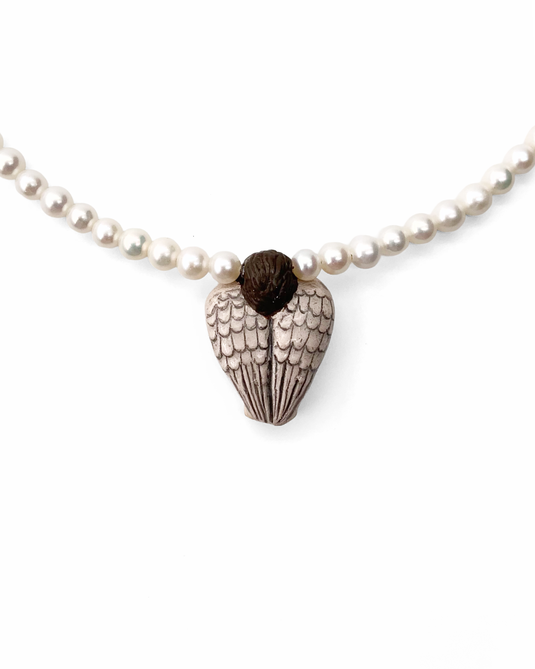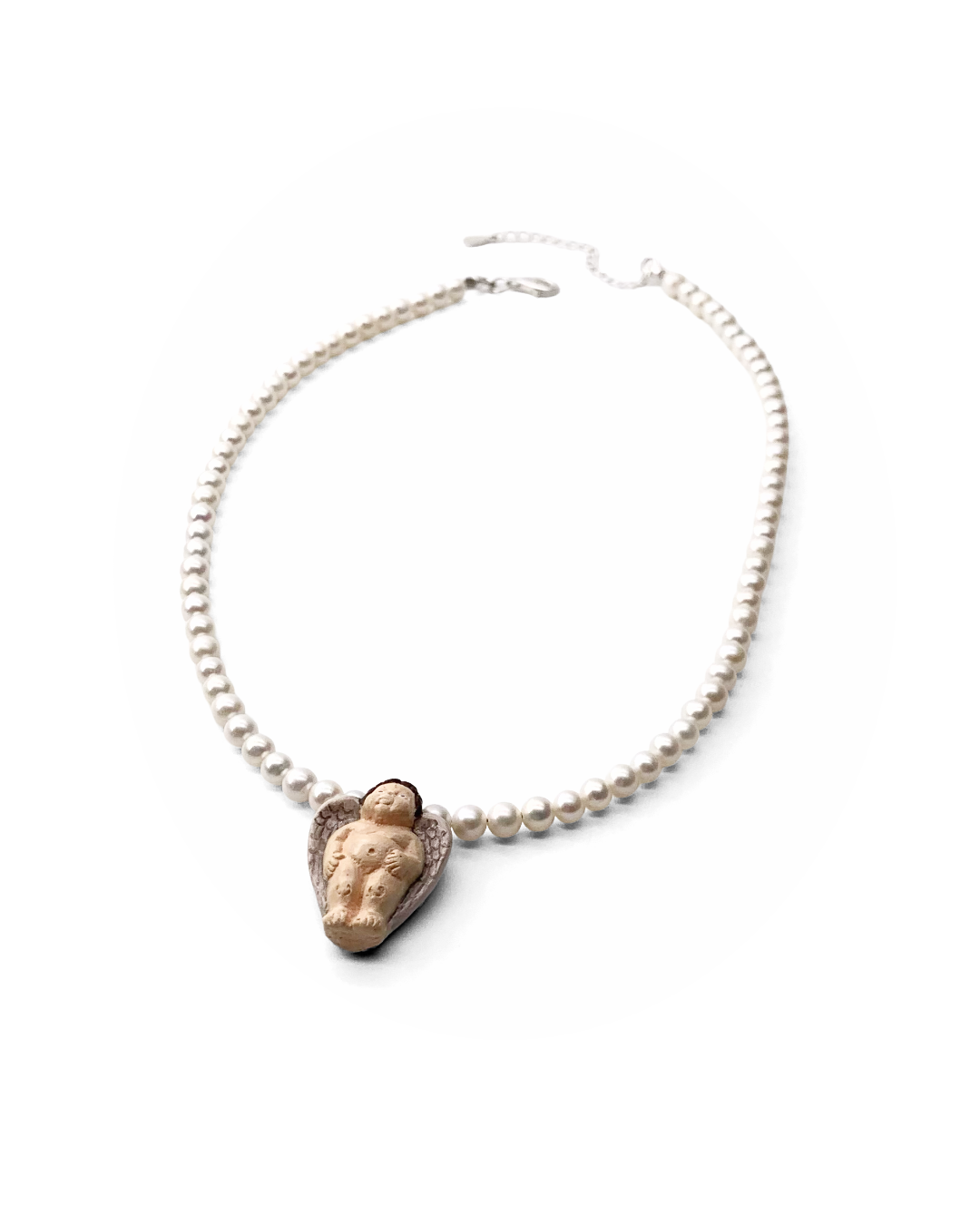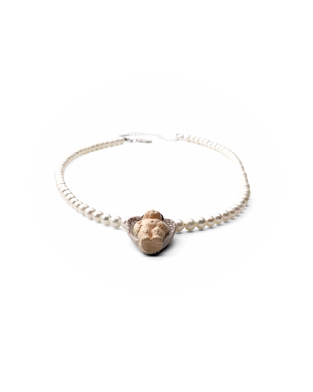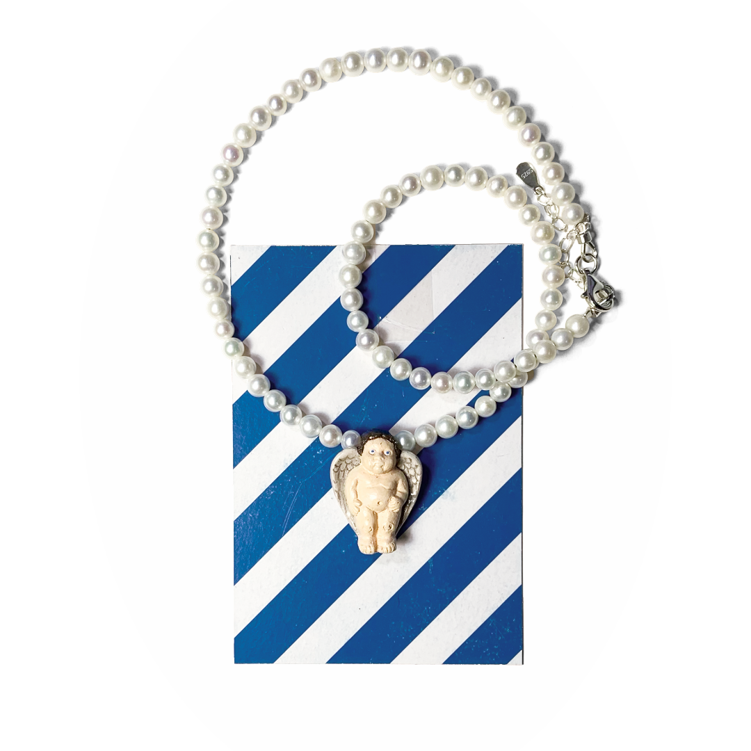 Strung with delicate pearls and finished with a sculpted angel charm, this piece adds a soft glow and a touch of charm to everyday wear.