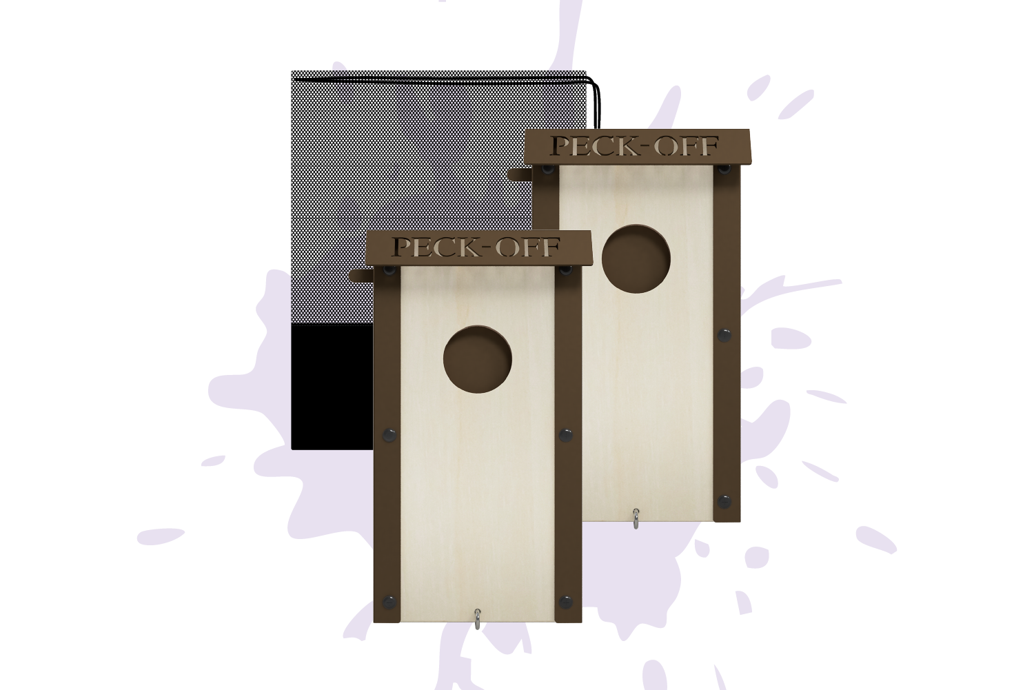 WHAT'S INCLUDED IN THE LIFESTYLE PACKAGE: 2 x PeckOff Premium Starling Traps and 1 PeckOff Catch Bag