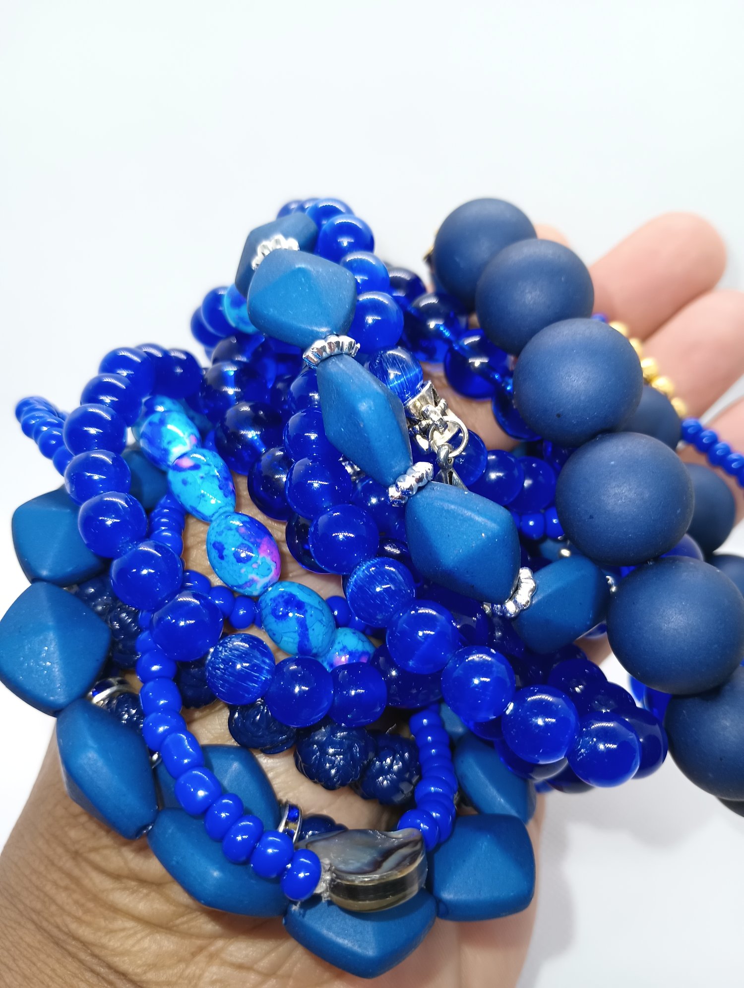 Blue Friendship Bracelet - Glass Bead (stretch)