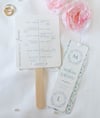 - Design Élégant et Raffiné : Les programmes éventails de mariage de la Collection AIGUES présentent un motif floral délicat dans des tons de bleu doux et vert d'eau, créant une atmosphère fraîche et élégante. Les couleurs choisies évoquent la sérénité et la nature, parfaites pour un mariage printanier ou d'été.