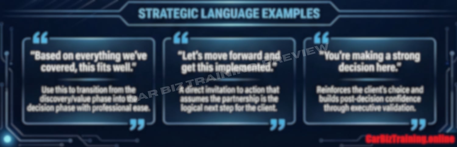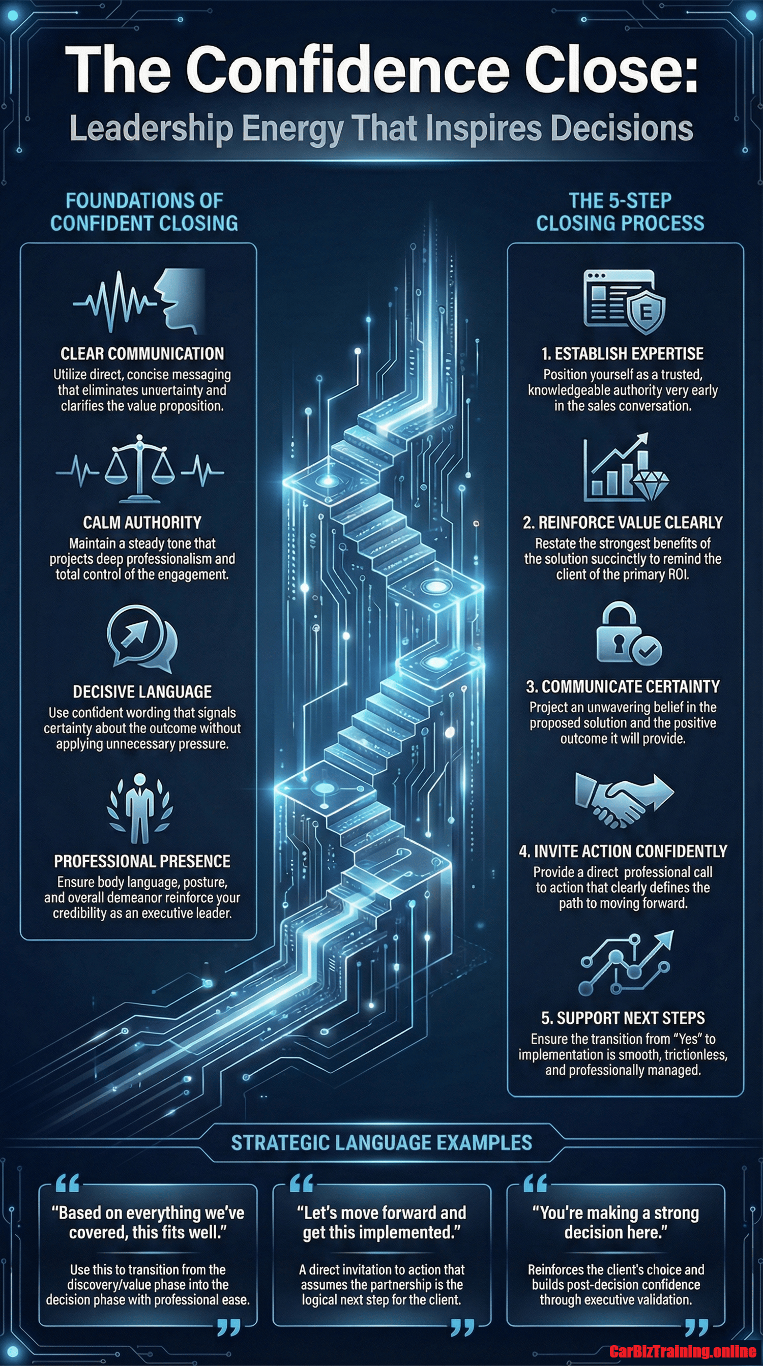 This professional closing framework provides practical language used in real dealership conversations — helping customers move forward comfortably while improving closing consistency.
